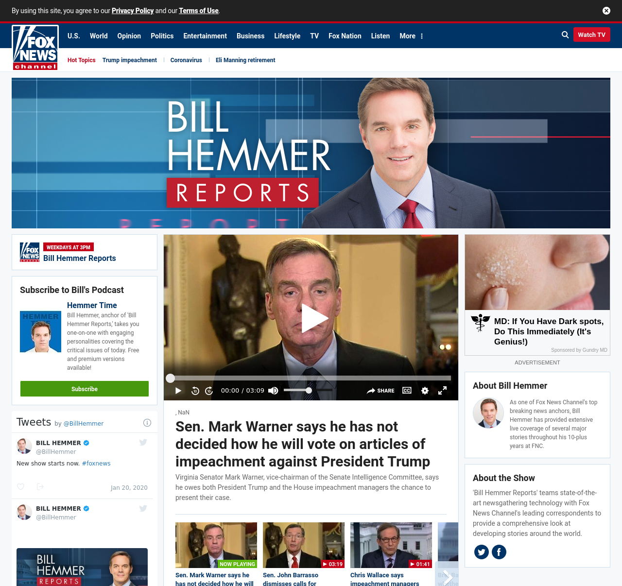 BH: Sen. Mark Warner says he has not decided how he will vote on articles of impeachment against President Trump ((billhemmer________)) ((lubuntu at wor2)) Virginia Senator Mark Warner, vice-chairman of the Senate Intelligence Committee, says he owes both President Trump and the House impeachment managers the chance to present their case