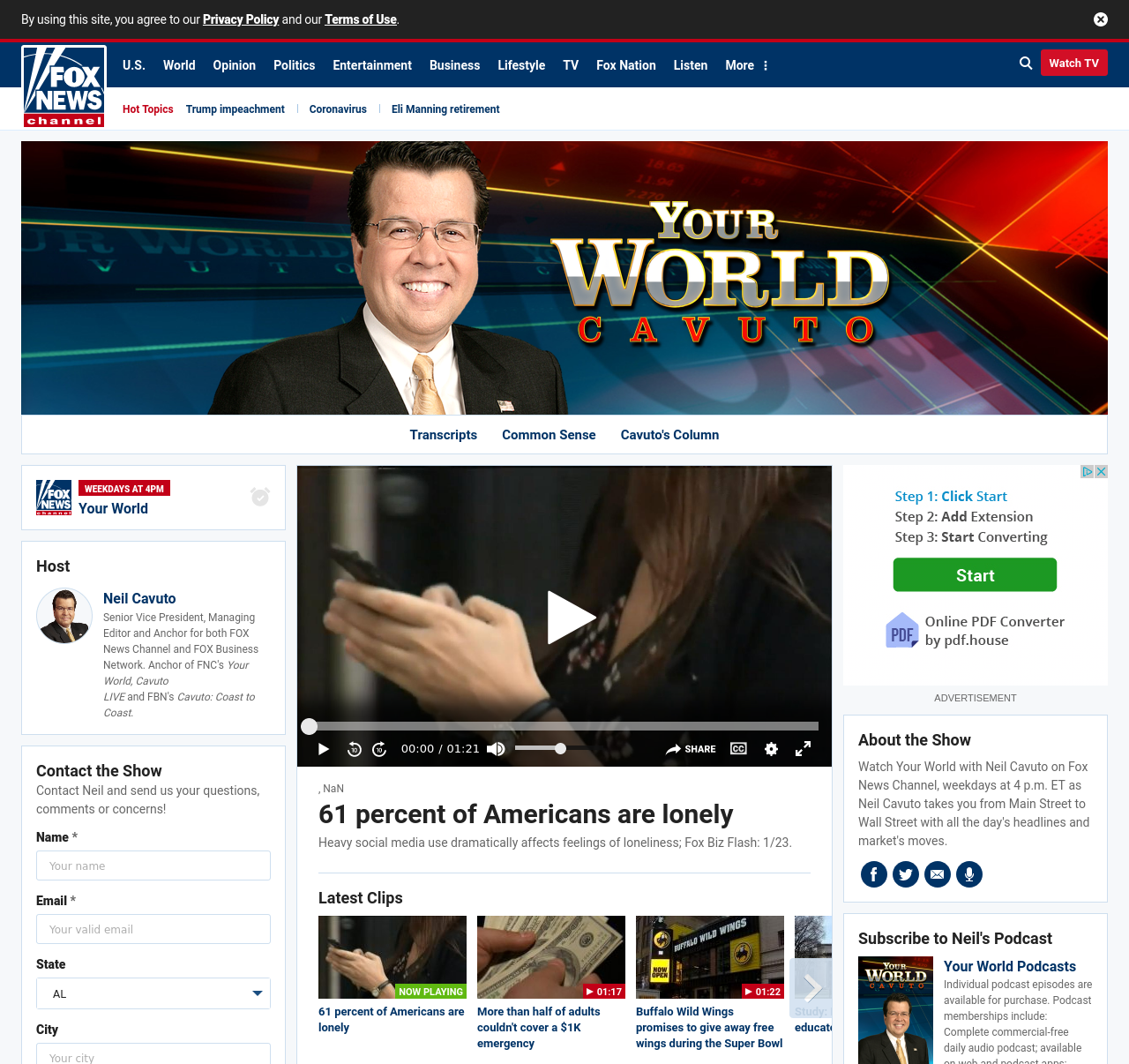 YW: 61 percent of Americans are lonely ((yourworldcavuto___)) ((lubuntu at wor2)) Heavy social media use dramatically affects feelings of loneliness; Fox Biz Flash: 1/23