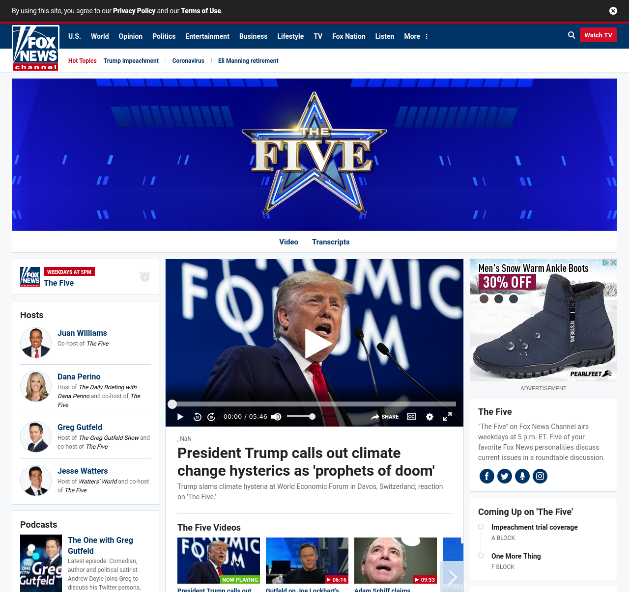FI: President Trump calls out climate change hysterics as ‘prophets of doom’ ((thefive___________)) ((lubuntu at wor2)) Trump slams climate hysteria at World Economic Forum in Davos, Switzerland; reaction on ‘The Five.’