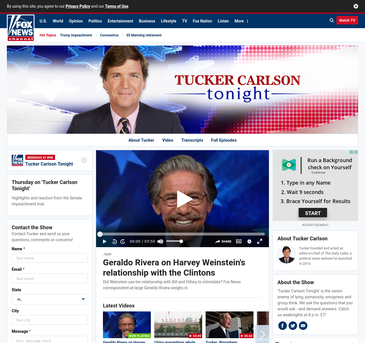 TC: Geraldo Rivera on Harvey Weinstein’s relationship with the Clintons ((tuckercarlson_____)) ((lubuntu at wor2)) Did Weinstein use his relationship with Bill and Hillary to intimidate? Fox News correspondent-at-large Geraldo Rivera weighs in