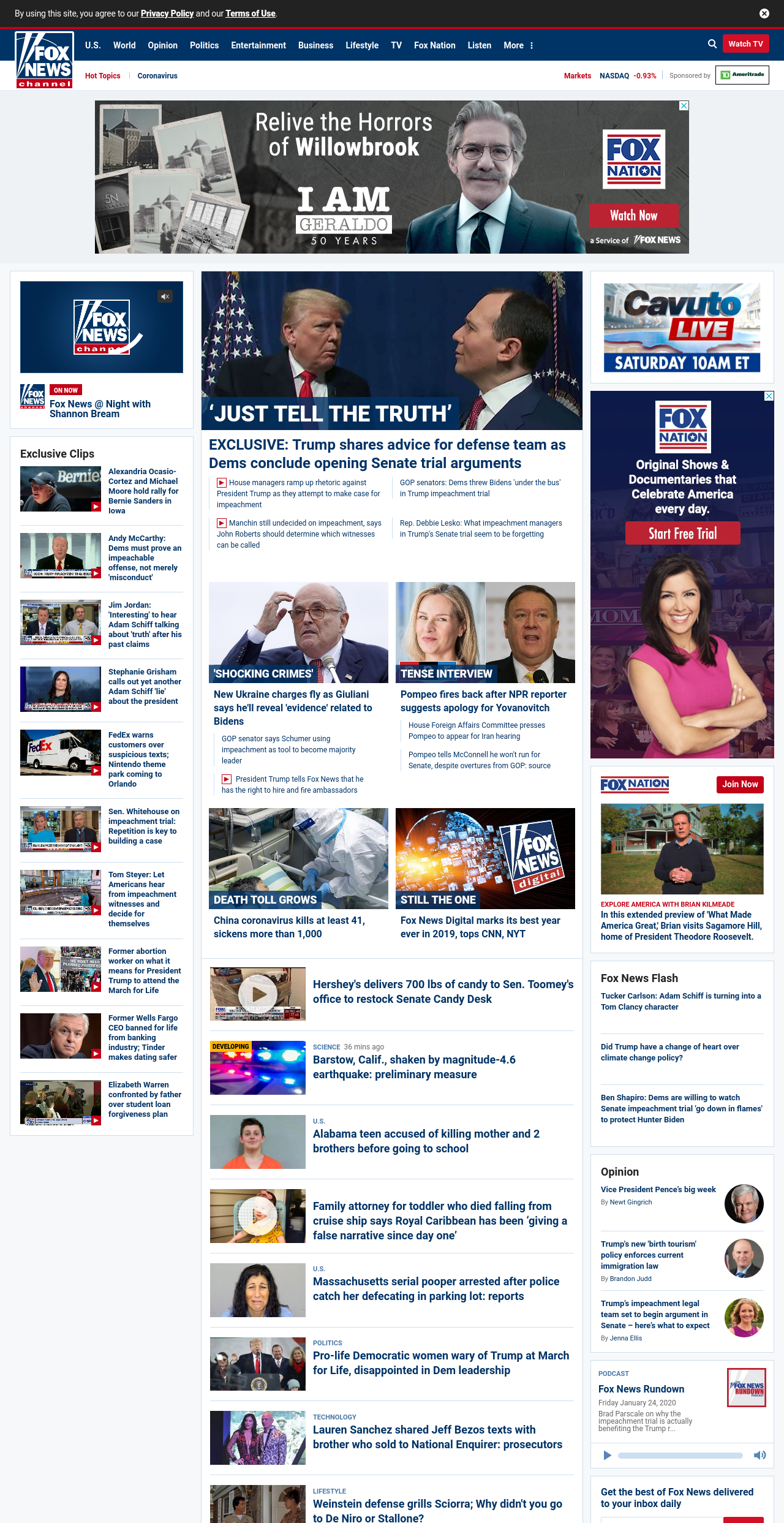 =”https://www.foxnews.com/media/president-trump-tells-ingraham-angle-all-his-impeachment-defense-team-has-to-do-is-just-be-honest-just-tell-the-truth“>EXCLUSIVE: Trump shares advice for defense team as Dems conclude opening Senate trial arguments