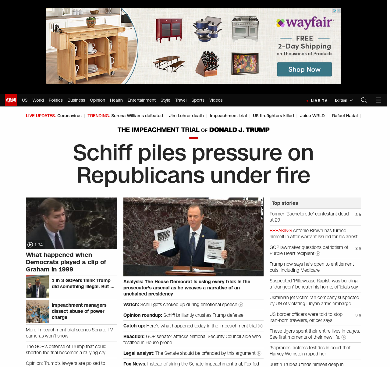 ” , title: “CNN – Breaking News, Latest News and Videos” , siblings: {“articleList”:[{“uri”:”/videos/politics/2020/01/23/jerry-nadler-lindsey-graham-crime-impeachment-trial-mattingly-vpx.cnn”,”headline”:”u003cstrong>What happened when Democrats played a clip of Graham in 1999u003c/strong>”,”thumbnail”:”//cdn.cnn.com/cnnnext/dam/assets/200123172319-lindsey-graham-clinton-impeachment-clip-trump-trial-small-11.jpg”,”duration”:”01:34″,”description”:”Impeachment manager Rep. Jerry Nadler (D) plays a clip of Lindsey Graham (R-SC) from 1999 during the impeachment trial of President Trump.”,”layout”:””,”iconType”:”video”