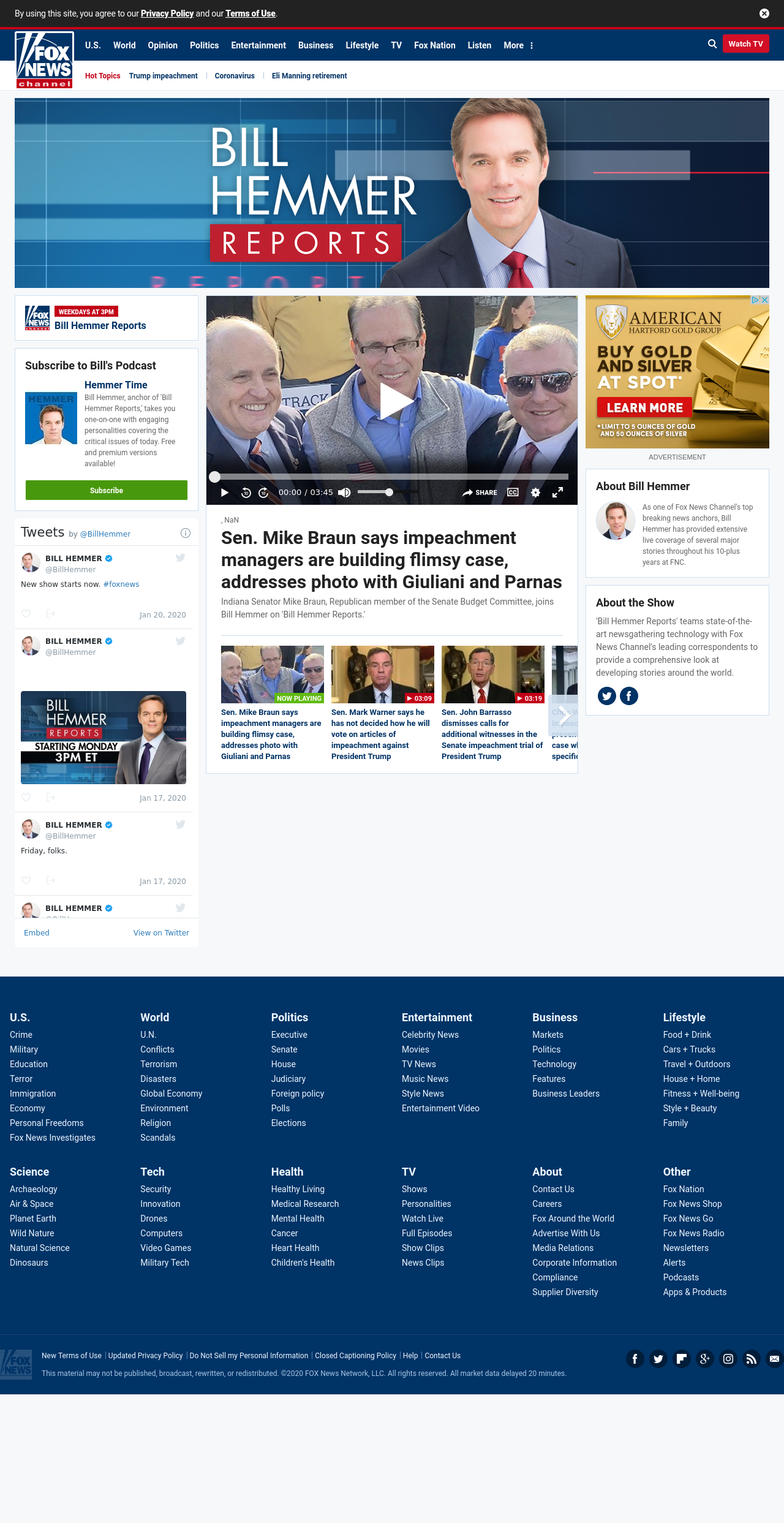 BH: Sen. Mike Braun says impeachment managers are building flimsy case, addresses photo with Giuliani and Parnas ((billhemmer________)) ((lubuntu at wor2))