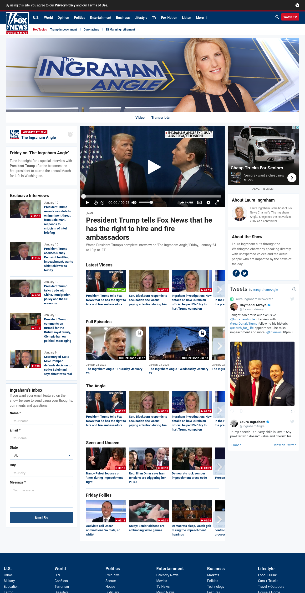 IA: President Trump tells Fox News that he has the right to hire and fire ambassadors ((ingramangle_______)) ((lubuntu at wor2))