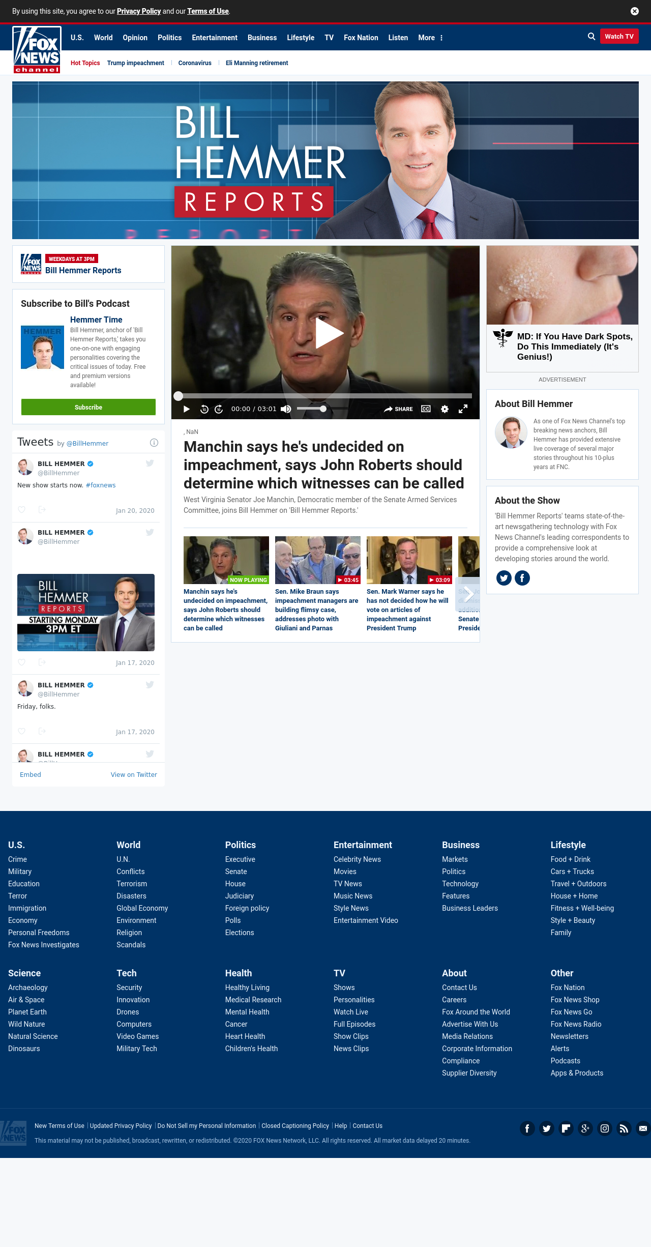 West Virginia Senator Joe Manchin, Democratic member of the Senate Armed Services Committee, joins Bill Hemmer on ‘Bill Hemmer Reports.’