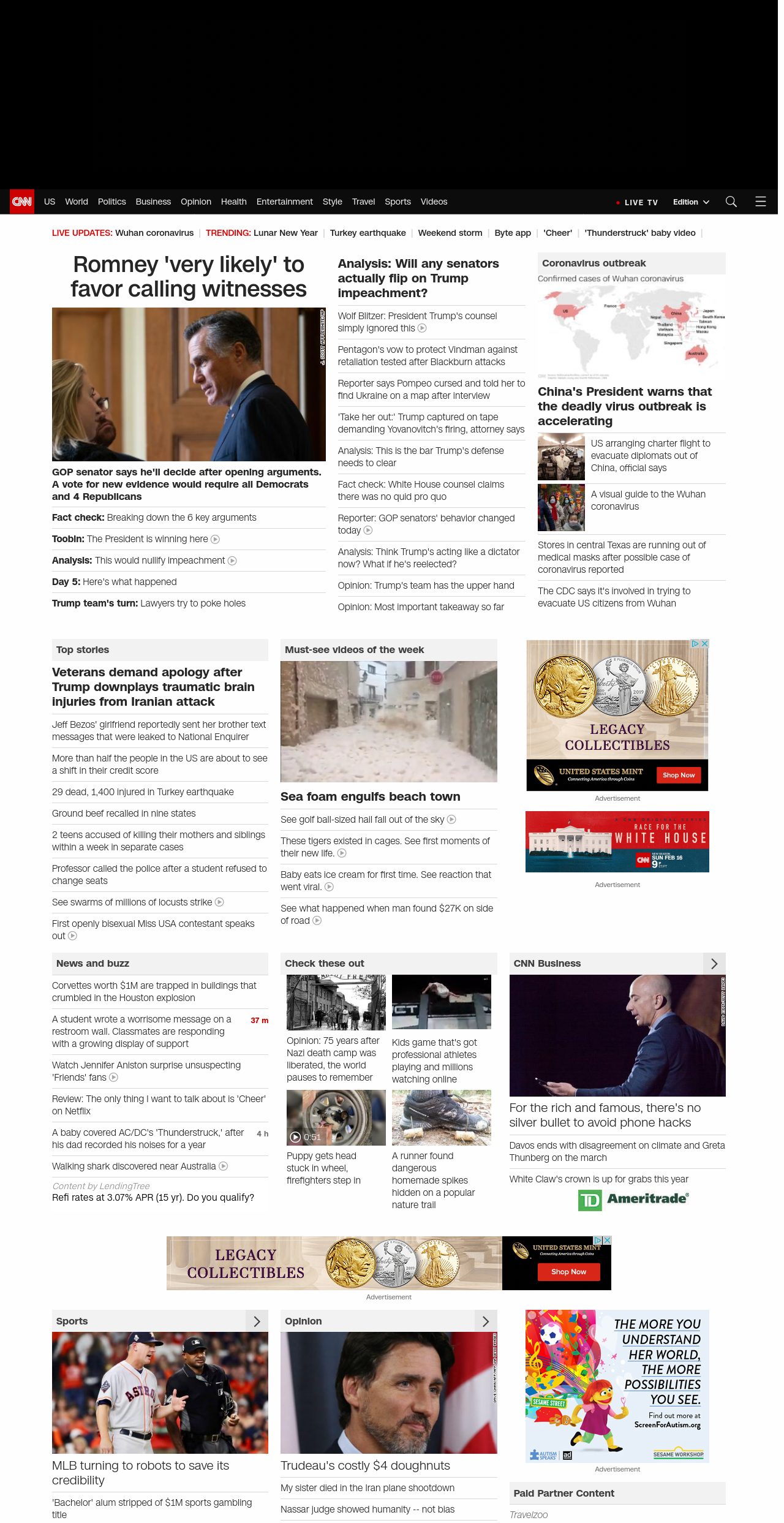 ” , title: “CNN – Breaking News, Latest News and Videos” , siblings: {“articleList”:[{“uri”:”/2020/01/25/politics/mitt-romney-witnesses-impeachment-trial/index.html”,”headline”:”u003cstrong>GOP senator says he’ll decide after opening arguments. A vote for new evidence would require all Democrats and 4 Republicans.u003c/strong>”,”thumbnail”:”//cdn.cnn.com/cnnnext/dam/assets/200125154055-01-mitt-romeny-0124-small-11.jpg”,”duration”:””,”description”:”Sen. Mitt Romney said Saturday that it’s “very likely” that he’ll be in favor of calling witnesses in the u003ca href=”https://www.cnn.com/specials/politics/trump-impeachment” target=”_blank”>impeachmentu003c/a> trial of President Donald Trump, but won’t decide until after opening arguments.”,”layout”:””
