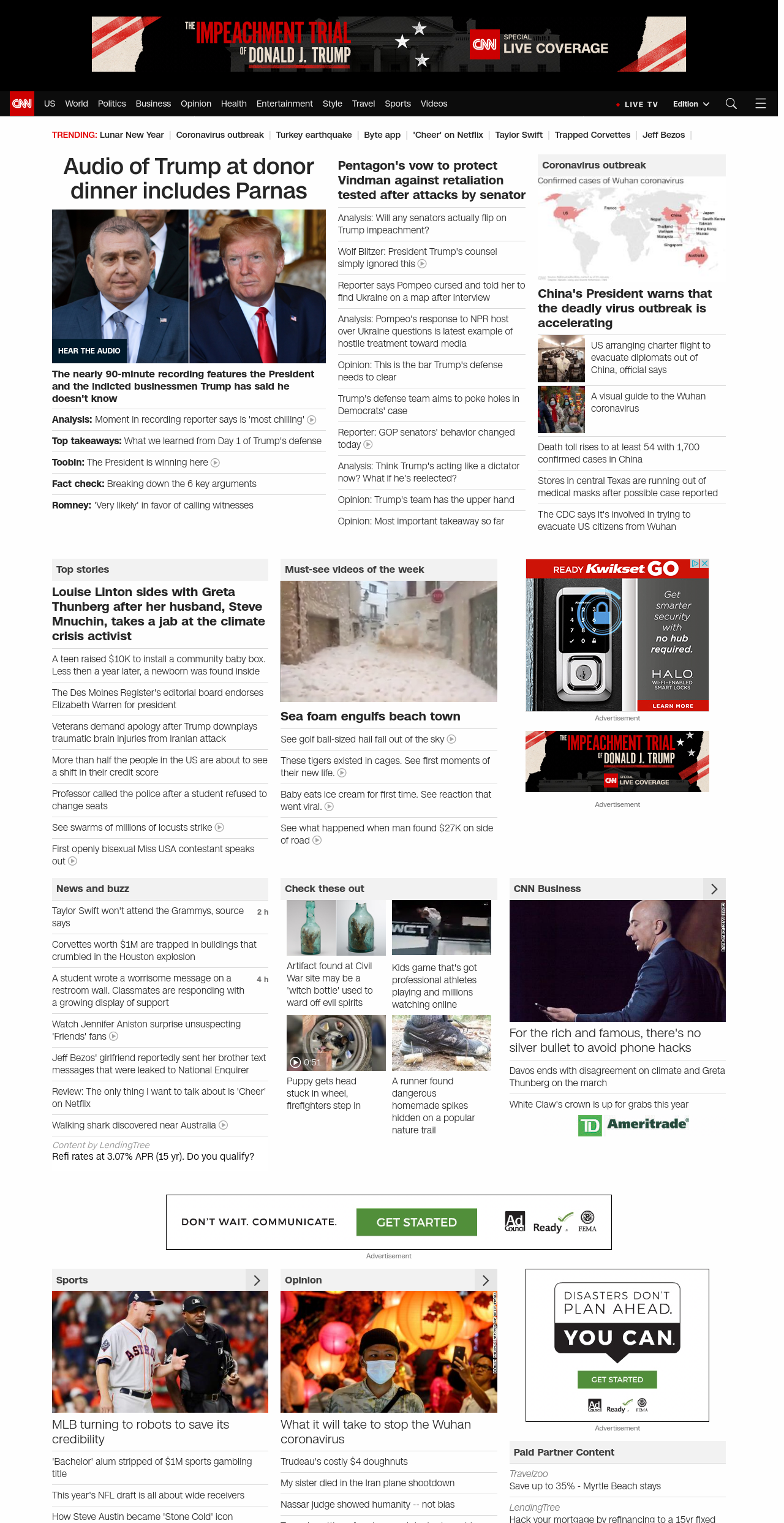 ” , title: “CNN – Breaking News, Latest News and Videos” , siblings: {“articleList”:[{“uri”:”/2020/01/25/politics/recording-trump-lev-parnas-igor-fruman-ukraine-ambassador/index.html”,”headline”:”u003cstrong>The nearly 90-minute recording features the President at donor dinner including Parnas, the indicted businessmen Trump has said he doesn’t knowu003c/strong>”,”thumbnail”:”//cdn.cnn.com/cnnnext/dam/assets/200116074540-lev-parnas-donald-trump-split-small-11.jpg”,”duration”:””,”description”:”A nearly 90-minute recording released Saturday of u003ca href=”https://www.cnn.com/2020/01/24/politics/trump-phone-call-ukraine-ambassador/index.html” target=”_blank”>President Donald Trump at a 2018 dinneru003c/a> with indicted businessmen he has claimed he doesn’t know includes Trump speaking animatedly about removing the US ambassador to Ukraine — at one point stating, “Get rid of her!””,”layout”:””