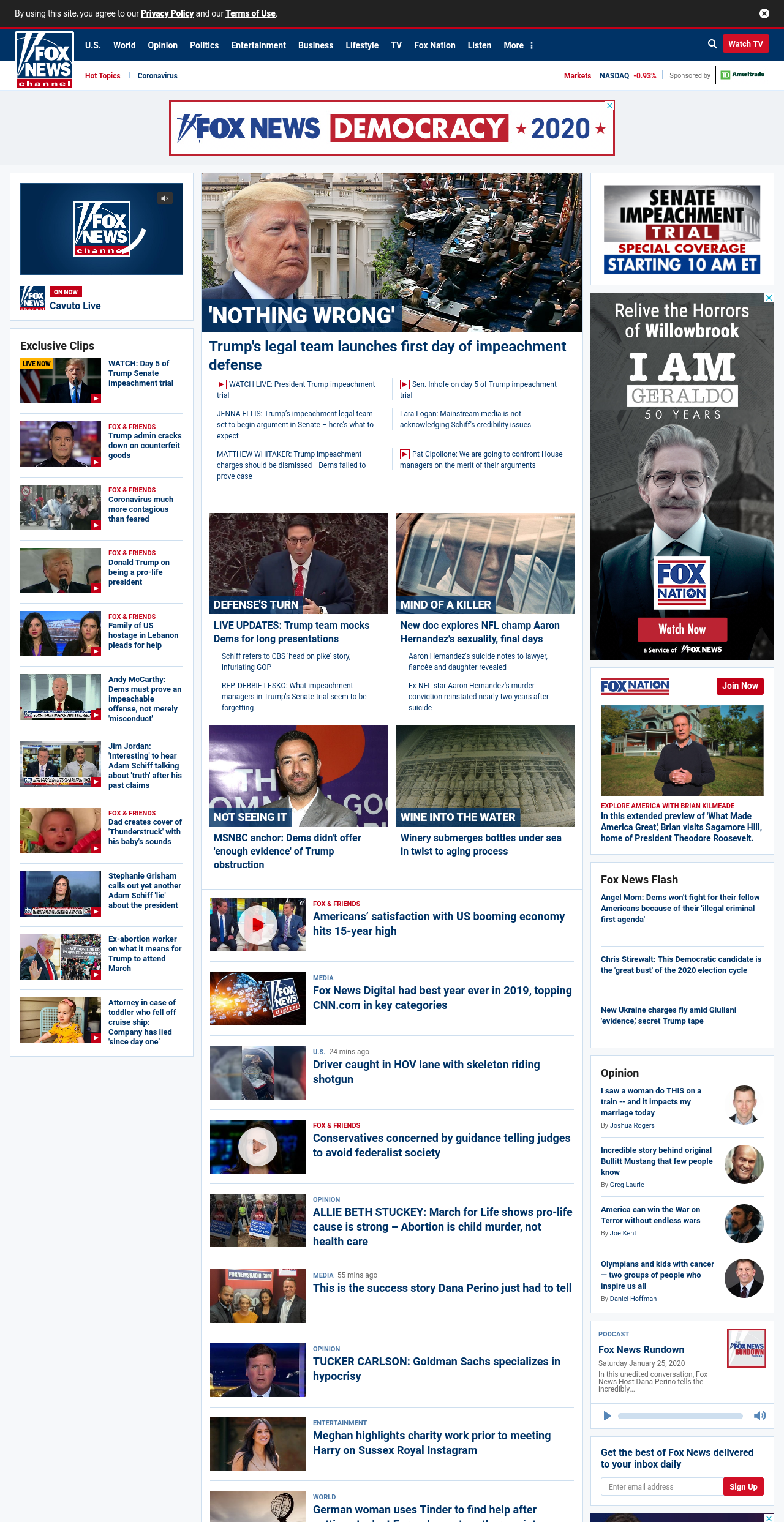 FN: [[' NOTHING WRONG' ]] Trump' s legal team launches first day of impeachment defense ((lubuntu at wor2))
