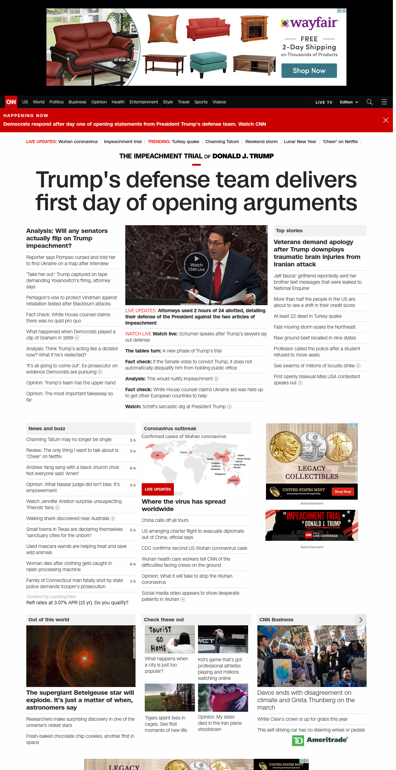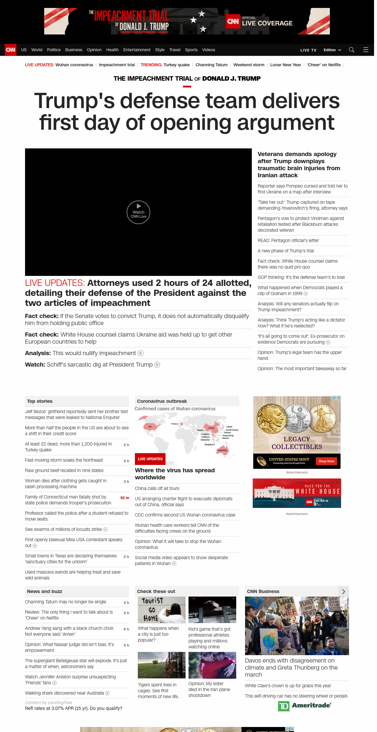 CNN: “:”u003cstrong>Attorneys used 2 hours of 24 allotted, detailing their defense of the President against the two articles of impeachmentu003c/strong>”, “BANNER=|pagerendered| ((lubuntu at wor2))