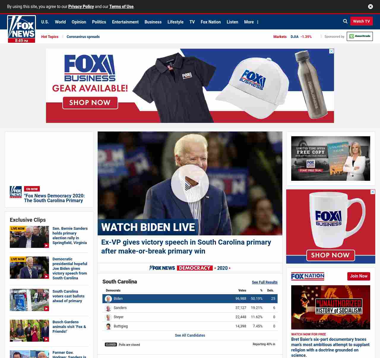 =”https://www.foxnews.com/politics/south-carolina-primary-polls“>Biden wins big in SC, as ex-VP’s ‘firewall’ gives campaign crucial boost ahead of Super Tuesday