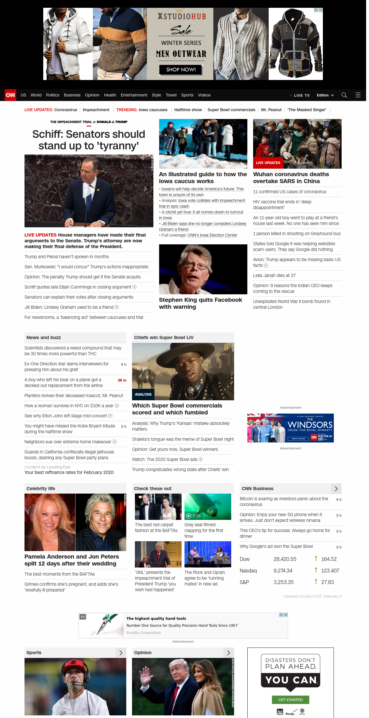 || Closing arguments begin in Senate trial ||” , title: “CNN – Breaking News, Latest News and Videos” , siblings: {“articleList”:[{“uri”:”/2020/02/03/politics/donald-trump-nancy-pelosi-relationship/index.html”,”headline”:”Trump and Pelosi haven’t spoken in months “,”thumbnail”:”//cdn.cnn.com/cnnnext/dam/assets/190924093845-trump-pelosi-split-lead-small-1-1.jpg”,”duration”:””,”description”:”When he delivers his State of the Union address Tuesday evening, u003ca href=”https://www.cnn.com/election/2020/candidate/trump” target=”_blank”>President Donald Trumpu003c/a> will directly cross paths with House Speaker Nancy Pelosi for the first time in months.”,”layout”:””