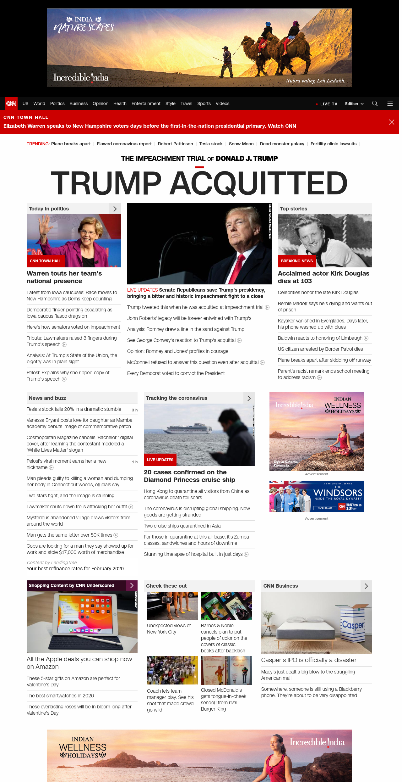 || TRUMP ACQUITTED ||” , title: “CNN – Breaking News, Latest News and Videos” , siblings: {“articleList”:[{“uri”:”/politics/live-news/cnn-town-halls-02-05-20/index.html”,”headline”:”u003cstrong>Warren touts her team’s national presenceu003c/strong>”,”thumbnail”:”//cdn.cnn.com/cnnnext/dam/assets/200205210450-02-warren-town-hall-0205-small-11.jpg”,”duration”:””,”description”:””,”layout”:””