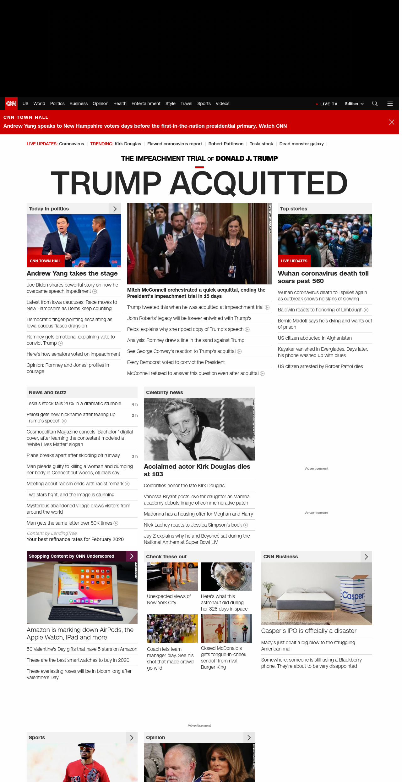 || TRUMP ACQUITTED ||” , title: “CNN – Breaking News, Latest News and Videos” , siblings: {“articleList”:[{“uri”:”/politics/live-news/cnn-town-halls-02-05-20/index.html”,”headline”:”u003cstrong>Andrew Yang takes the stageu003c/strong>”,”thumbnail”:”//cdn.cnn.com/cnnnext/dam/assets/200205220743-05-andrew-yang-town-hall-0205-small-11.jpg”,”duration”:””,”description”:””,”layout”:””