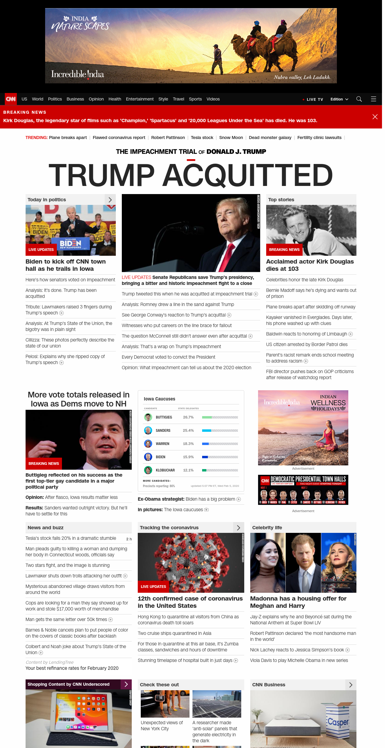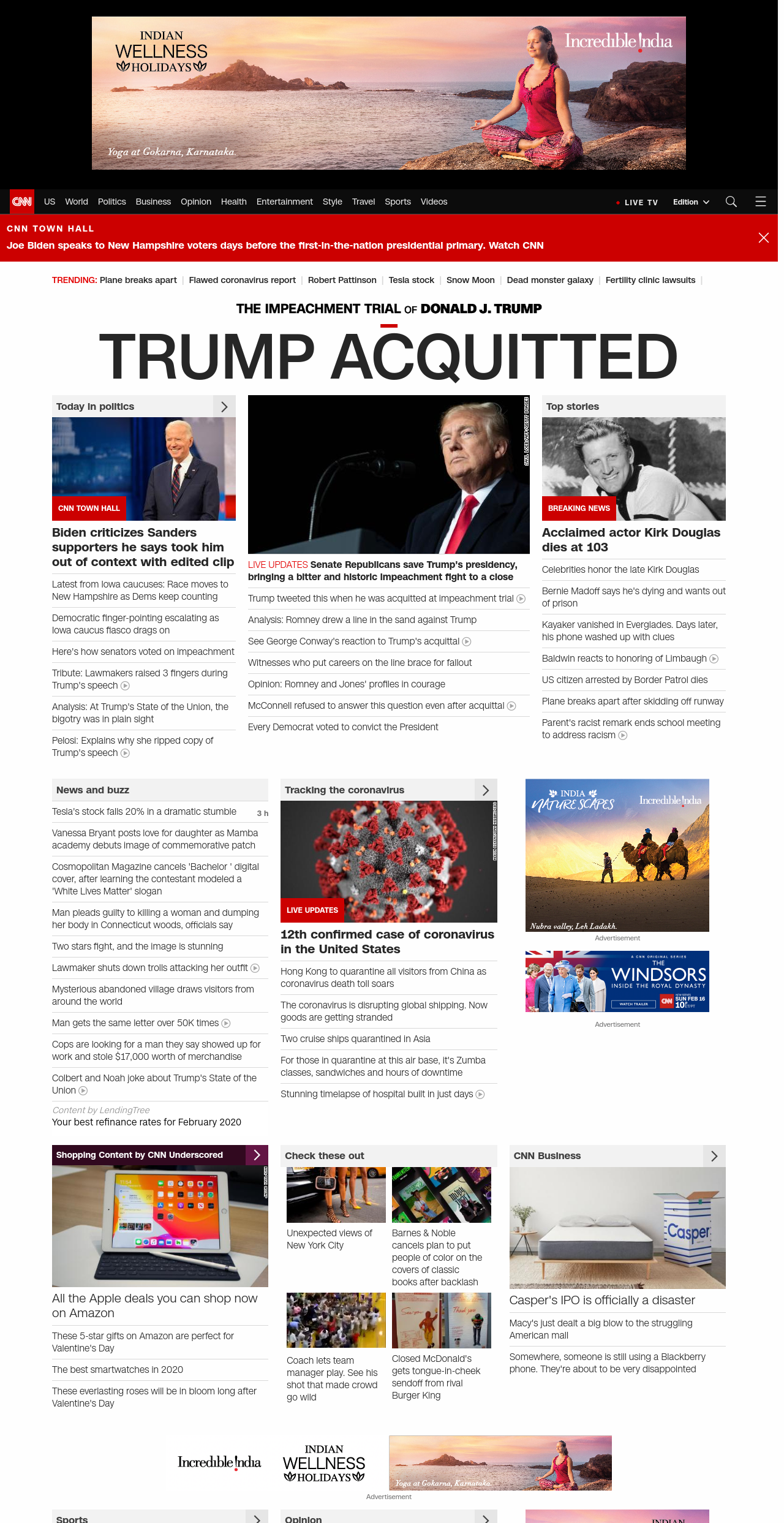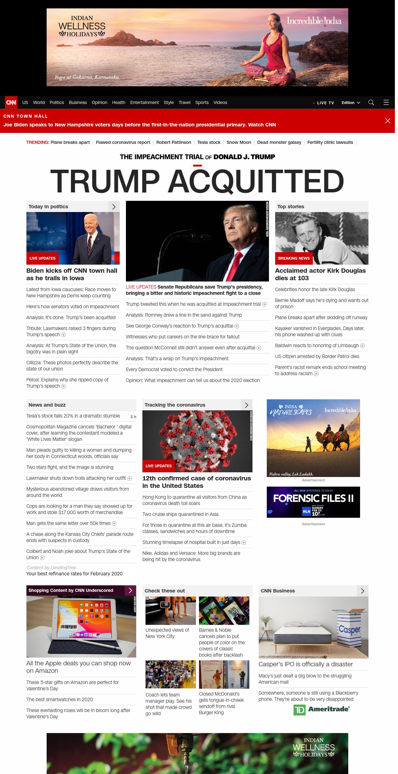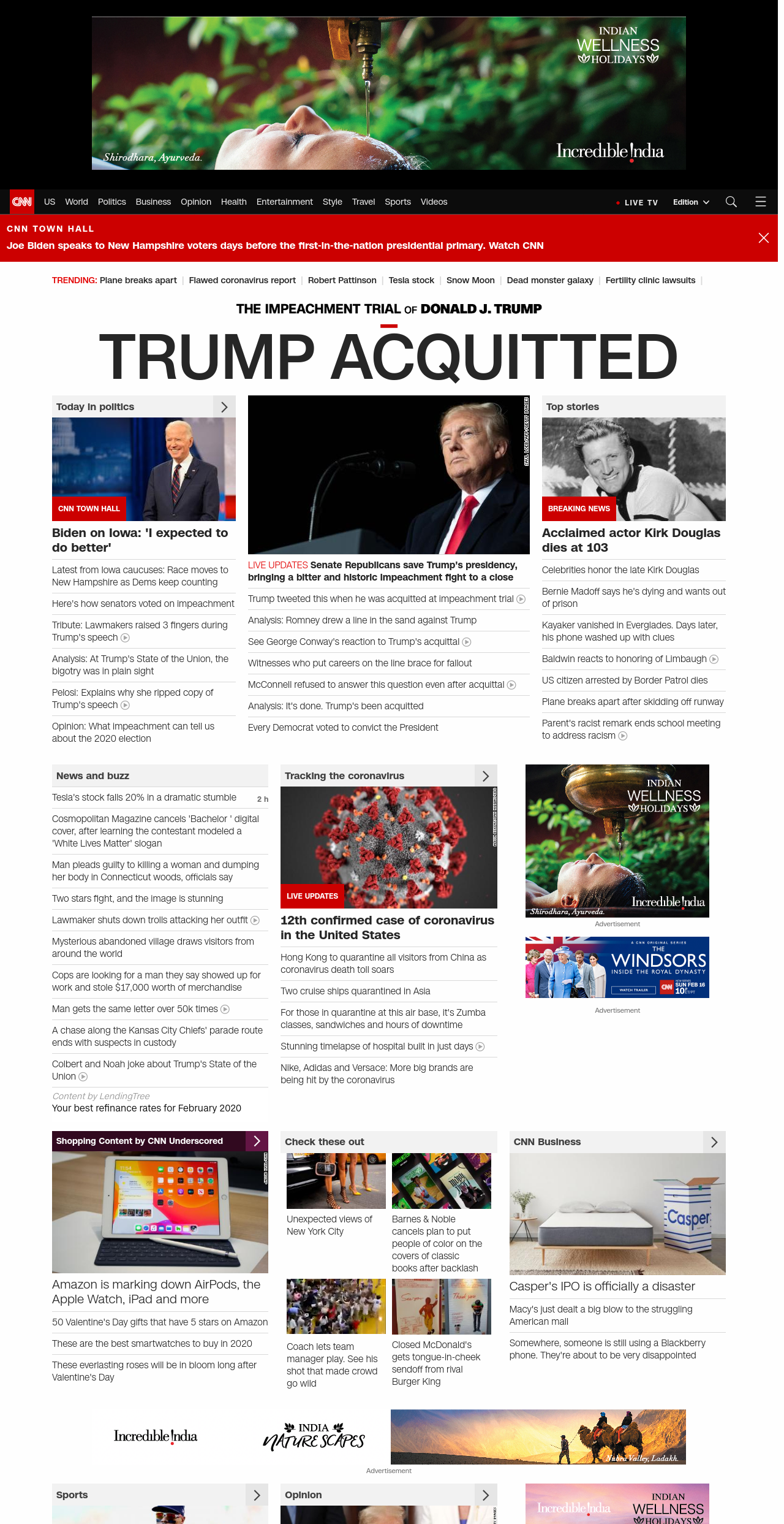 || TRUMP ACQUITTED ||” , title: “CNN – Breaking News, Latest News and Videos” , siblings: {“articleList”:[{“uri”:”/politics/live-news/cnn-town-halls-02-05-20/index.html”,”headline”:”u003cstrong>Biden kicks off CNN town hall as he trails in Iowau003c/strong>”,”thumbnail”:”//cdn.cnn.com/cnnnext/dam/assets/200205200429-04-town-hall-0205-biden-small-11.jpg”,”duration”:””,”description”:””,”layout”:””