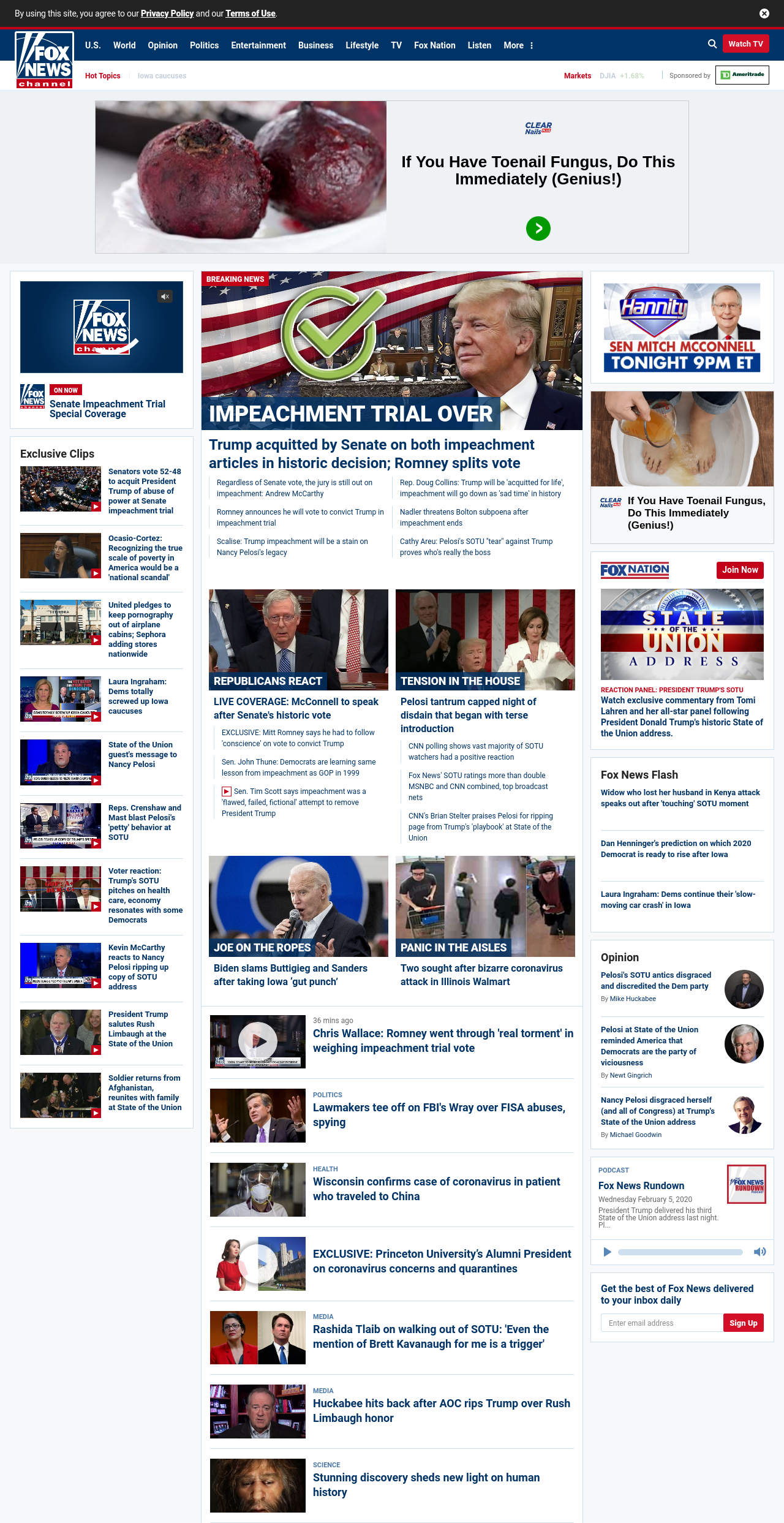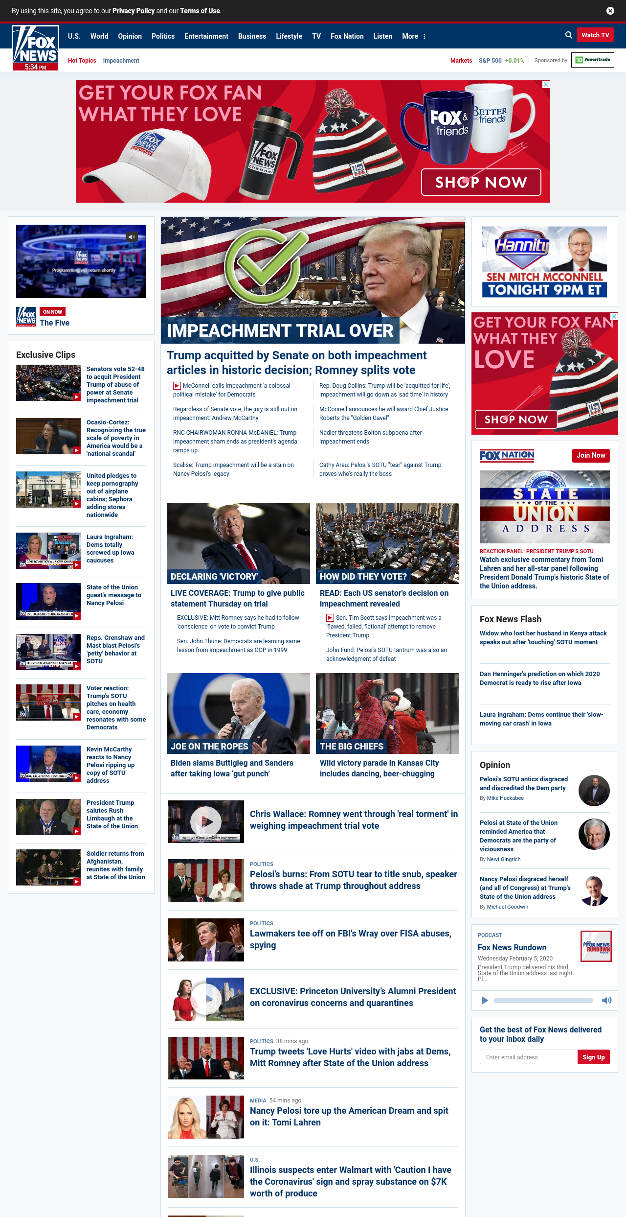 =”https://www.foxnews.com/politics/senate-acquits-president-trump-impeachment-vote“>Trump acquitted by Senate on both impeachment articles in historic decision; Romney splits vote