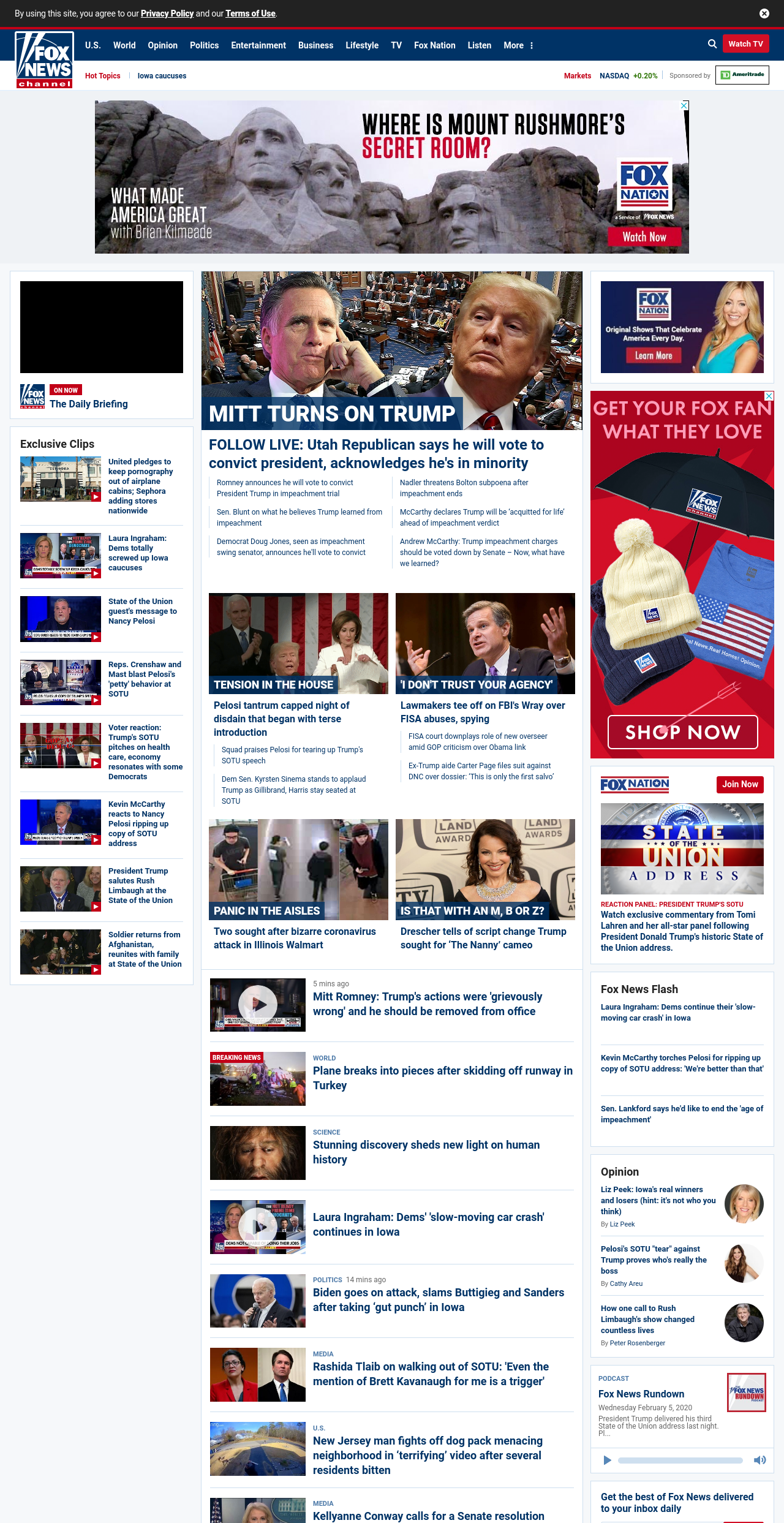 || Romney says he will vote to convict Trump ||” , title: “CNN – Breaking News, Latest News and Videos” , siblings: {“articleList”:[{“uri”:”/2020/02/05/media/nancy-pelosi-speech-rip/index.html”,”headline”:”u003cstrong>Pelosi pulls move right from Trump’s playbooku003c/strong>”,”thumbnail”:””,”duration”:””,”description”:”House Speaker Nancy Pelosi’s shredding of President Trump’s u003ca href=”http://www.cnn.com/2020/02/04/politics/state-of-the-union-highlights-takeaways/index.html” target=”_blank”>State of the Union speechu003c/a> was ripped right from u003ca href=”http://www.cnn.com/2020/02/04/opinions/sotu-commentary-roundup-opinion/index.html” target=”_blank”>Trump’s playbooku003c/a>.”,”layout”:””