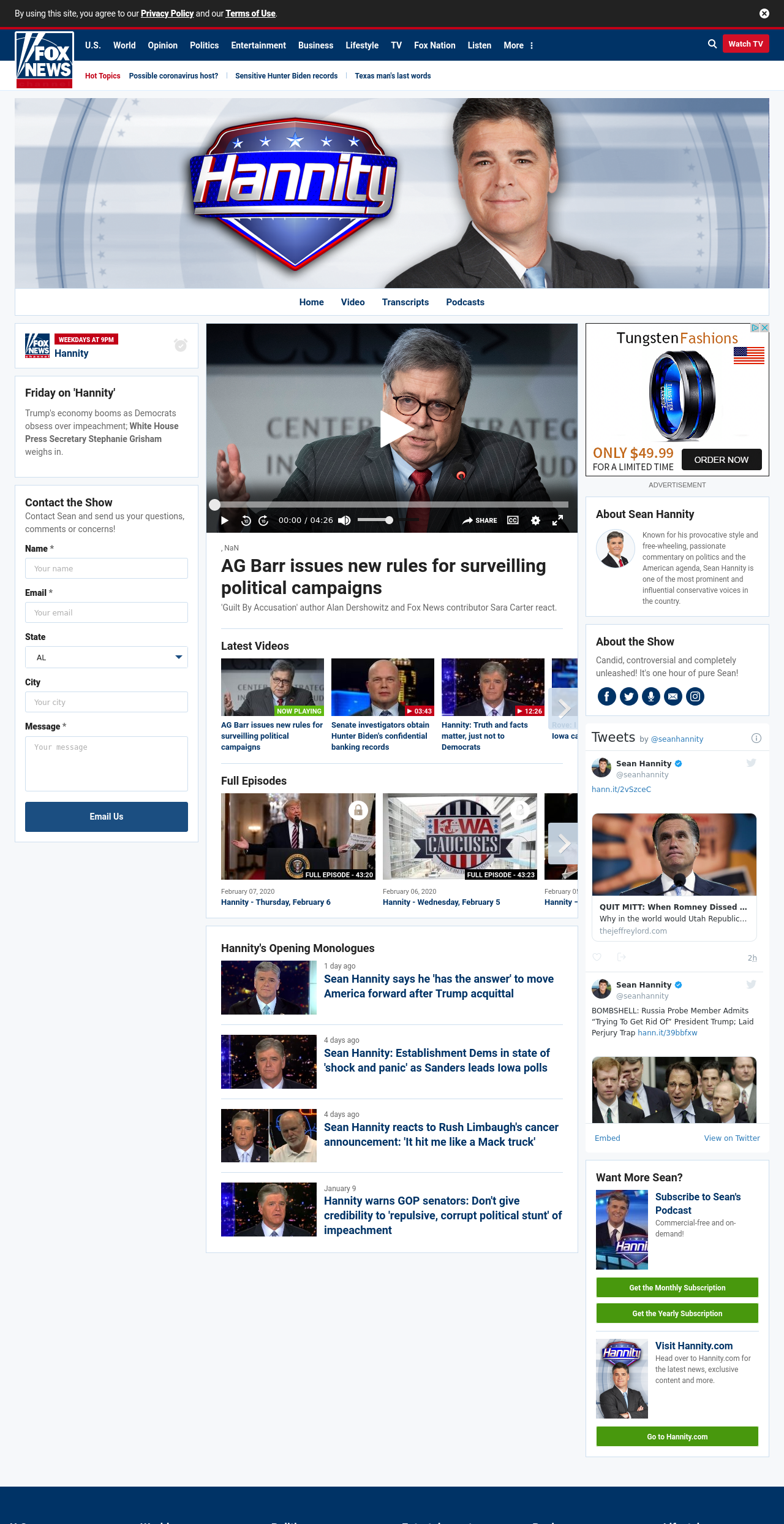 HA: AG Barr issues new rules for surveilling political campaigns ((hannity___________)) ((lubuntu at wor2))