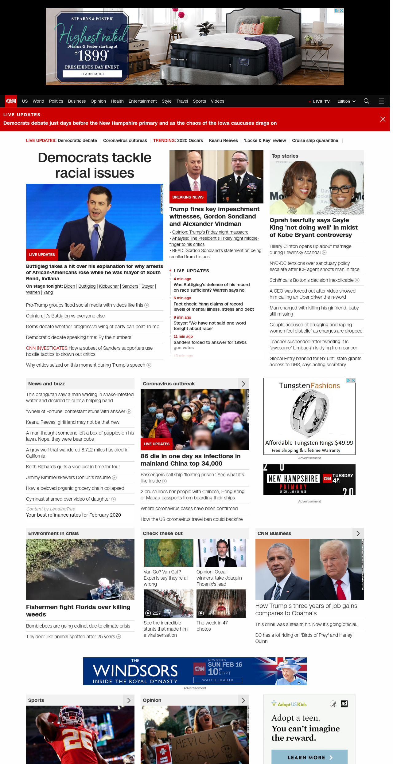 || Democrats tackle racial issues ||” , title: “CNN – Breaking News, Latest News and Videos” , siblings: {“articleList”:[{“uri”:”/politics/live-news/democratic-debate-live/index.html”,”headline”:”u003cstrong>Buttigieg takes a hit over his explanation for why arrests of African-Americans rose while he was mayor of South Bend, Indianau003c/strong>”,”thumbnail”:”//cdn.cnn.com/cnnnext/dam/assets/200207211950-22-abc-dem-debate-0207-buttigieg-small-11.jpg”,”duration”:””,”description”:”u003cstrong>On stage tonight:u003c/strong> u003ca href=”https://www.cnn.com/election/2020/candidate/biden” target=”_blank”>Bidenu003c/a> | u003ca href=”https://www.cnn.com/election/2020/candidate/buttigieg” target=”_blank”>Buttigiegu003c/a> | u003ca href=”https://www.cnn.com/election/2020/candidate/klobuchar” target=”_blank”>Klobucharu003c/a> | u003ca href=”https://www.cnn.com/election/2020/candidate/sanders” target=”_blank”>Sandersu003c/a> | u003ca href=”https://www.cnn.com/election/2020/candidate/steyer” target=”_blank”>Steyeru003c/a> | u003ca href=”https://www.cnn.com/election/2020/candidate/warren” target=”_blank”>Warrenu003c/a> | u003ca href=”https://www.cnn.com/election/2020/candidate/yang” target=”_blank”>Yangu003c/a>”,”layout”:””