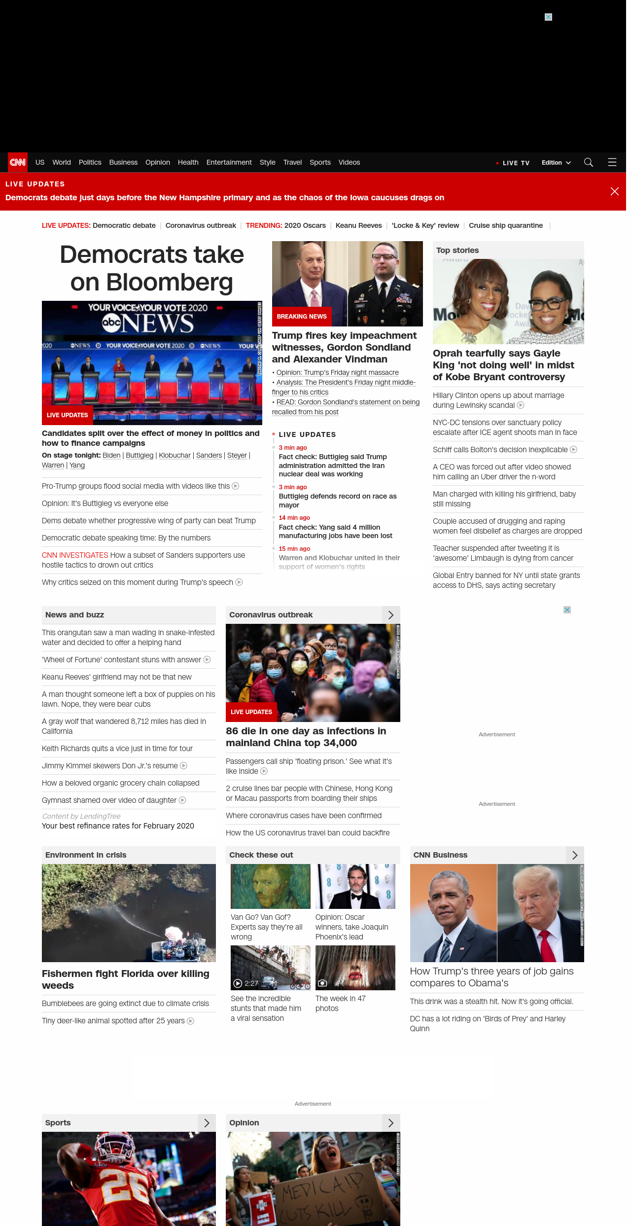 || Democrats take on Bloomberg ||” , title: “CNN – Breaking News, Latest News and Videos” , siblings: {“articleList”:[{“uri”:”/politics/live-news/democratic-debate-live/index.html”,”headline”:”u003cstrong>Candidates split over the effect of money in politics and how to finance campaignsu003c/strong>”,”thumbnail”:”//cdn.cnn.com/cnnnext/dam/assets/200207202033-03-abc-dem-debate-0207-small-11.jpg”,”duration”:””,”description”:”u003cstrong>On stage tonight:u003c/strong> u003ca href=”https://www.cnn.com/election/2020/candidate/biden” target=”_blank”>Bidenu003c/a> | u003ca href=”https://www.cnn.com/election/2020/candidate/buttigieg” target=”_blank”>Buttigiegu003c/a> | u003ca href=”https://www.cnn.com/election/2020/candidate/klobuchar” target=”_blank”>Klobucharu003c/a> | u003ca href=”https://www.cnn.com/election/2020/candidate/sanders” target=”_blank”>Sandersu003c/a> | u003ca href=”https://www.cnn.com/election/2020/candidate/steyer” target=”_blank”>Steyeru003c/a> | u003ca href=”https://www.cnn.com/election/2020/candidate/warren” target=”_blank”>Warrenu003c/a> | u003ca href=”https://www.cnn.com/election/2020/candidate/yang” target=”_blank”>Yangu003c/a>”,”layout”:””