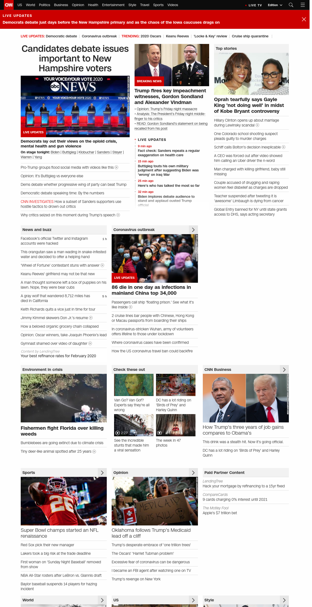 || Candidates debate issues important to New Hampshire voters ||” , title: “CNN – Breaking News, Latest News and Videos” , siblings: {“articleList”:[{“uri”:”/politics/live-news/democratic-debate-live/index.html”,”headline”:”u003cstrong>Democrats lay out their views on the opioid crisis, mental health and gun violenceu003c/strong>”,”thumbnail”:”//cdn.cnn.com/cnnnext/dam/assets/200207202033-03-abc-dem-debate-0207-small-11.jpg”,”duration”:””,”description”:”u003cstrong>On stage tonight:u003c/strong> u003ca href=”https://www.cnn.com/election/2020/candidate/biden” target=”_blank”>Bidenu003c/a> | u003ca href=”https://www.cnn.com/election/2020/candidate/buttigieg” target=”_blank”>Buttigiegu003c/a> | u003ca href=”https://www.cnn.com/election/2020/candidate/klobuchar” target=”_blank”>Klobucharu003c/a> | u003ca href=”https://www.cnn.com/election/2020/candidate/sanders” target=”_blank”>Sandersu003c/a> | u003ca href=”https://www.cnn.com/election/2020/candidate/steyer” target=”_blank”>Steyeru003c/a> | u003ca href=”https://www.cnn.com/election/2020/candidate/warren” target=”_blank”>Warrenu003c/a> | u003ca href=”https://www.cnn.com/election/2020/candidate/yang” target=”_blank”>Yangu003c/a>”,”layout”:””