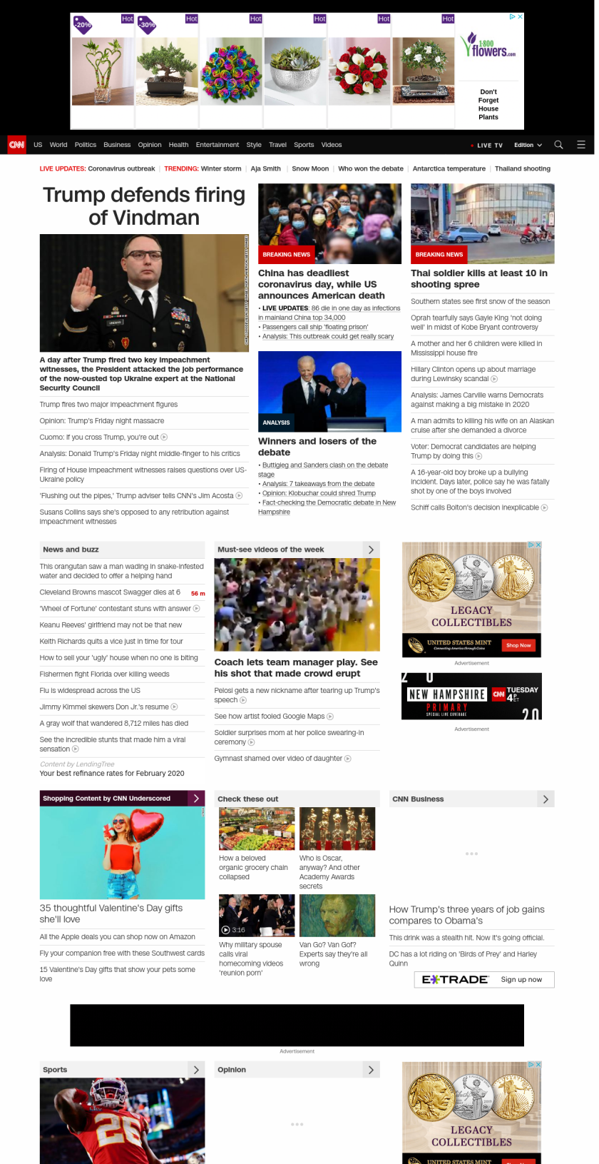 CNN: “:”u003cstrong>A day after Trump fired two key impeachment witnesses, the President attacked the job performance of the now-ousted top Ukraine expert at the National Security Councilu003c/strong>”, “BANNER=|pagerendered| ((lubuntu at wor2))