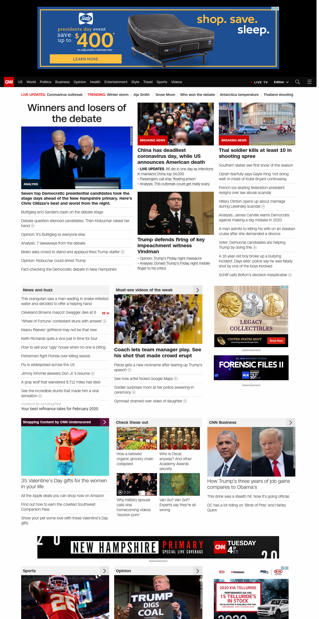 || Winners and losers of the debate ||” , title: “CNN – Breaking News, Latest News and Videos” , siblings: {“articleList”:[{“uri”:”/2020/02/07/politics/who-won-the-debate/index.html”,”headline”:”u003cstrong>Seven top Democratic presidential candidates took the stage days ahead of the New Hampshire primary. Here’s Chris Cillizza’s best and worst from the night.u003c/strong>”,”thumbnail”:”//cdn.cnn.com/cnnnext/dam/assets/200207210658-05-abc-dem-debate-0207-biden-hugs-bernie-small-11.jpg”,”duration”:””,”description”:”The seven top Democratic presidential candidates took theu003ca href=”https://www.cnn.com/2020/02/07/politics/abc-new-hampshire-debate/index.html” target=”_blank”> debate stageu003c/a> Friday night just days ahead of the New Hampshire primary, a back-and-forth affair that spoke to the stakes in the 2020 nomination fight.”,”layout”:””