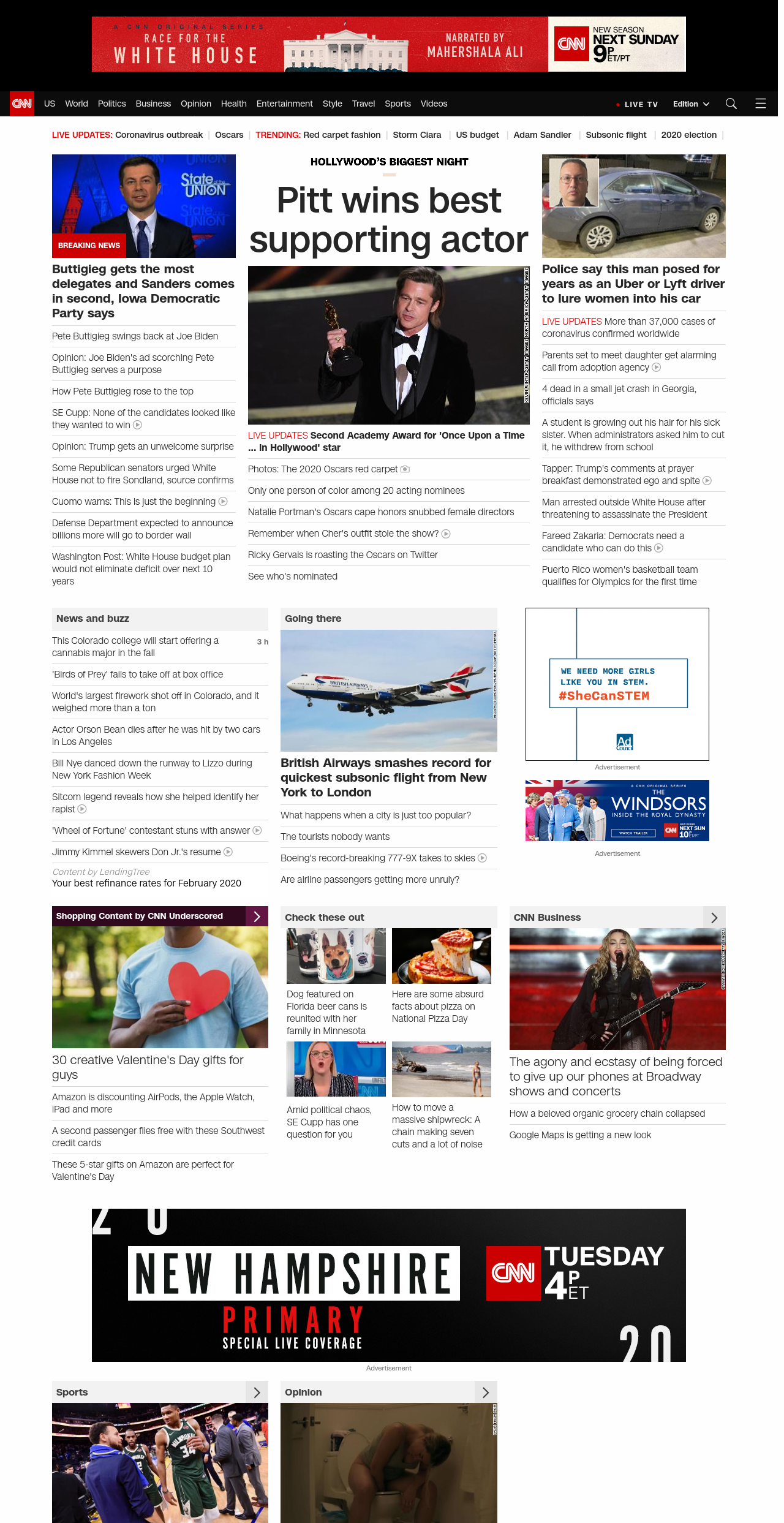 FN: [[POLITICAL PUNCHES]] Brad Pitt uses Oscars speech to bash impeachment trial, as Hollywood goes activist ((lubuntu at wor2))