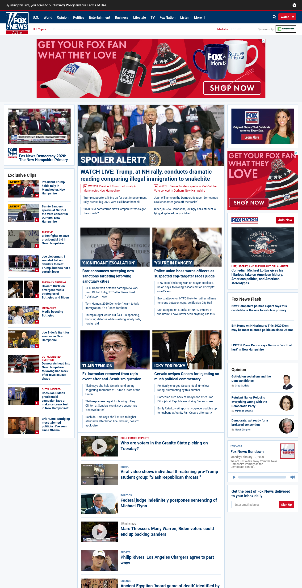 =”https://www.foxnews.com/politics/trump-new-hampshire-rally-shake-up-democrats“>WATCH LIVE: Trump, at NH rally, conducts dramatic reading comparing illegal immigration to snakebite