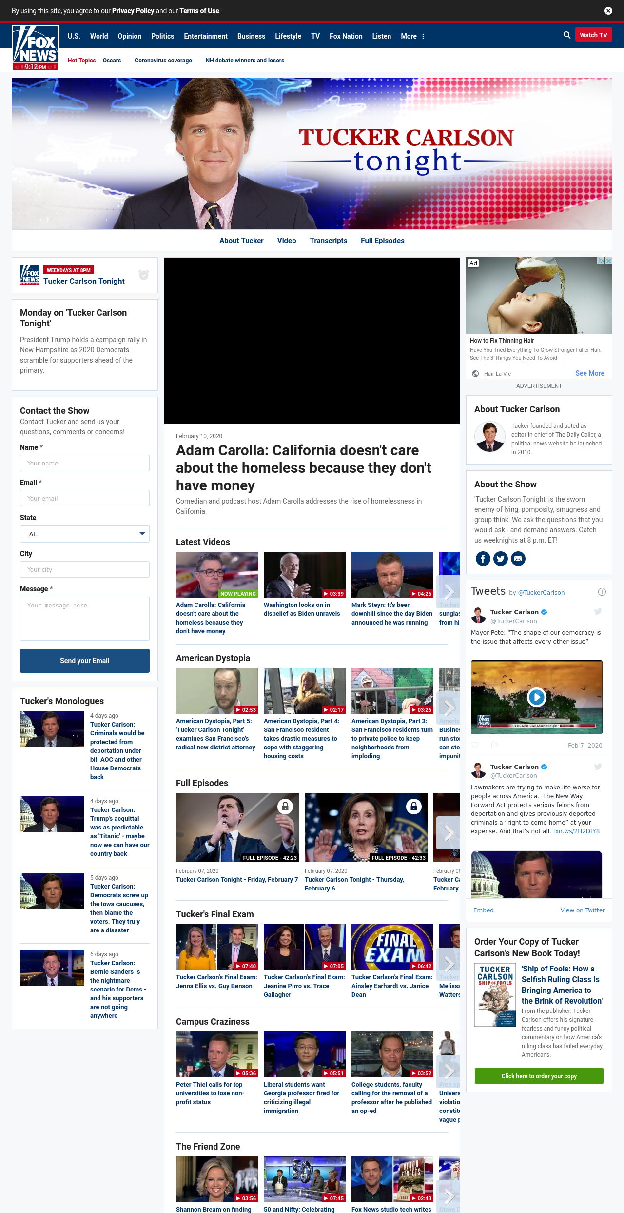 TC: Adam Carolla: California doesn’t care about the homeless because they don’t have money ((tuckercarlson_____)) ((lubuntu at wor2))