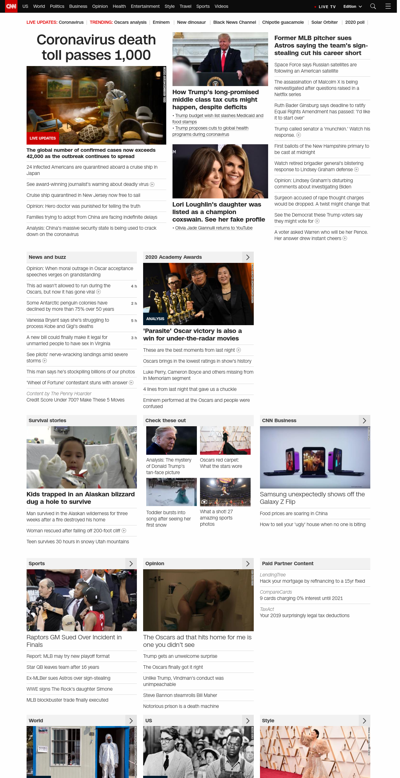|| Coronavirus death toll passes 1,000 ||” , title: “CNN – Breaking News, Latest News and Videos” , siblings: {“articleList”:[{“uri”:”/asia/live-news/coronavirus-outbreak-02-11-20-intl-hnk/index.html”,”headline”:”u003cstrong>The global number of confirmed cases now exceeds 42,000 as the outbreak continues to spreadu003c/strong>”,”thumbnail”:”//cdn.cnn.com/cnnnext/dam/assets/200210171534-06-coronavirus-0209-shanghai-small-11.jpg”,”duration”:””,”description”:””,”layout”:””