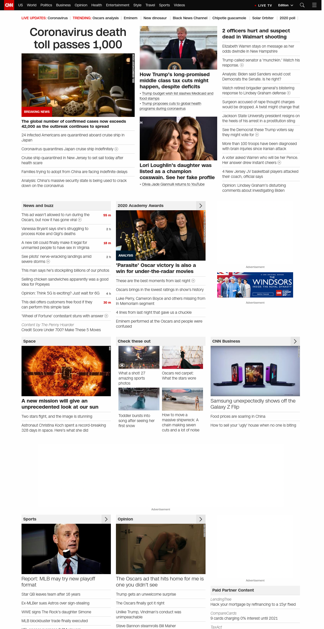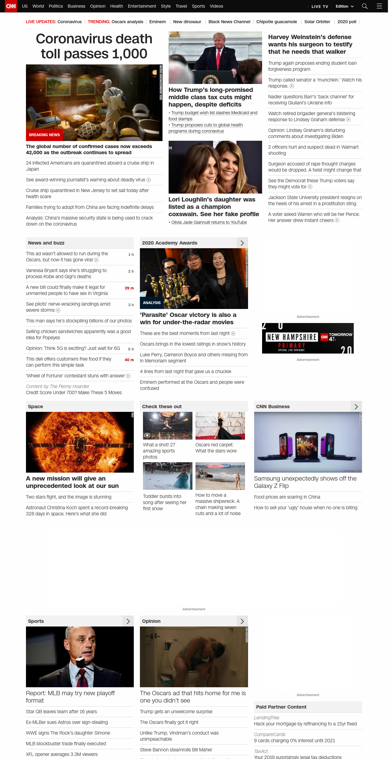 || Coronavirus death toll passes 1,000 ||” , title: “CNN – Breaking News, Latest News and Videos” , siblings: {“articleList”:[{“uri”:”/2020/02/10/us/coronavirus-cruise-ship-americans-quarantine/index.html”,”headline”:”24 infected Americans are quarantined aboard a cruise ship in Japan”,”thumbnail”:”//cdn.cnn.com/cnnnext/dam/assets/200210130843-01-coronavirus-0210-yokohama-small-11.jpg”,”duration”:””,”description”:”⢠u003ca href=”http://www.cnn.com/2020/02/10/us/coronavirus-cruise-ship-set-sail-new-jersey/index.html” target=”_blank”>Cruise ship docked in New Jersey sets sail after coronavirus scareu003c/a>u003cbr />⢠u003ca href=”https://www.cnn.com/2020/02/10/football/dele-alli-coronavirus-apology-spt-intl-gbr/index.html” target=”_blank”>Soccer star apologizes for coronavirus videou003c/a>”,”layout”:””