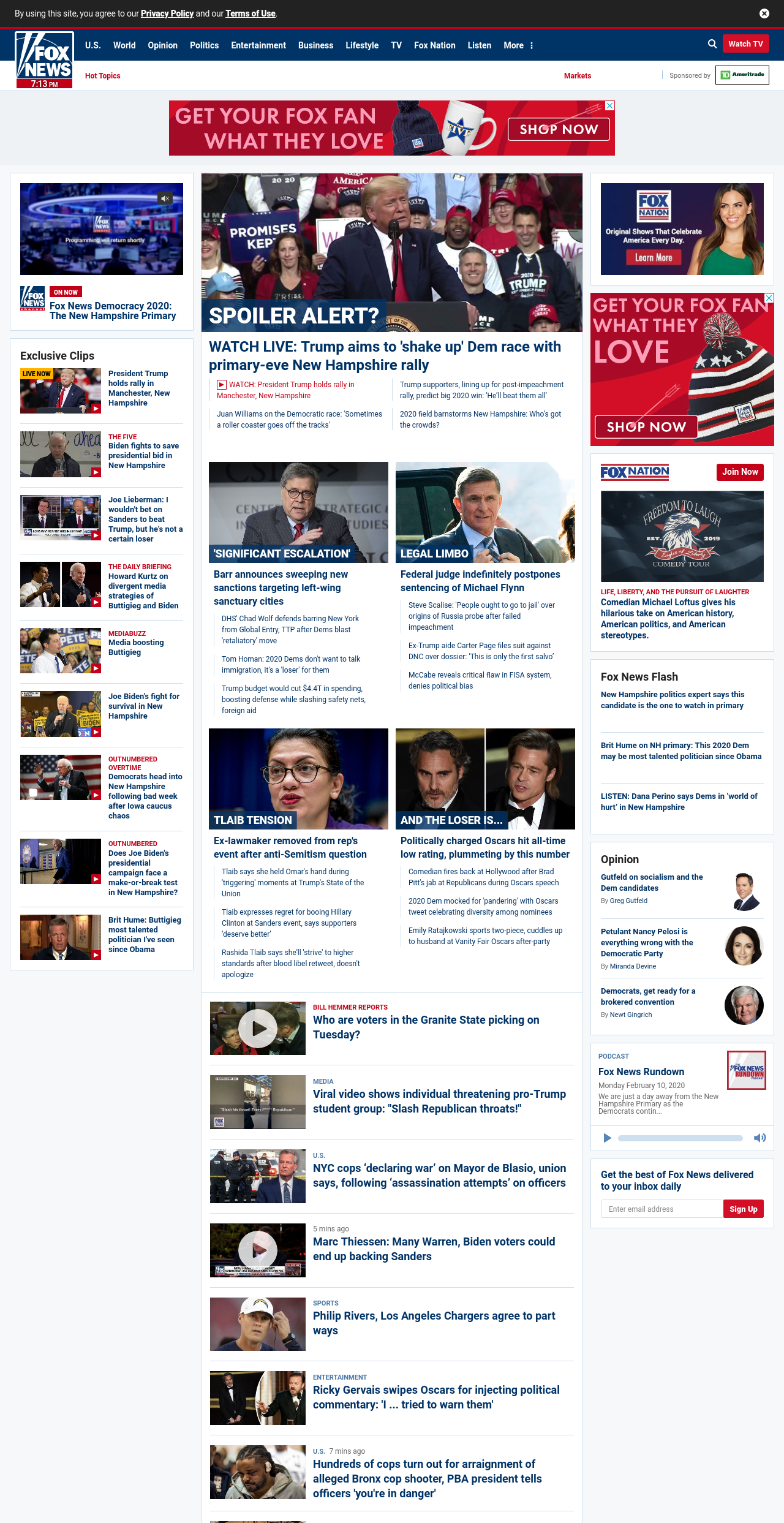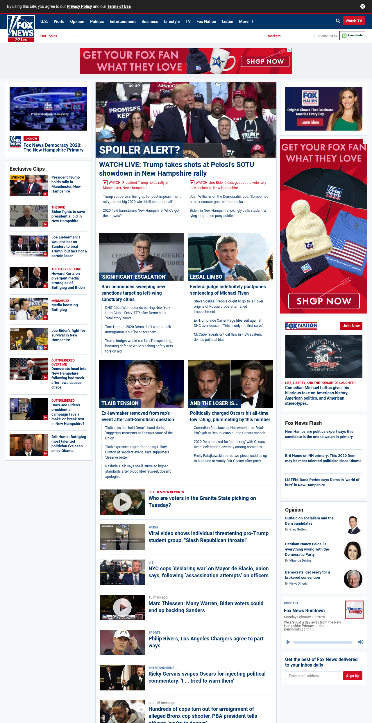 FN: [[SPOILER ALERT?]] WATCH LIVE: Trump aims to ' shake up' Dem race with primary-eve New Hampshire rally ((lubuntu at wor2))