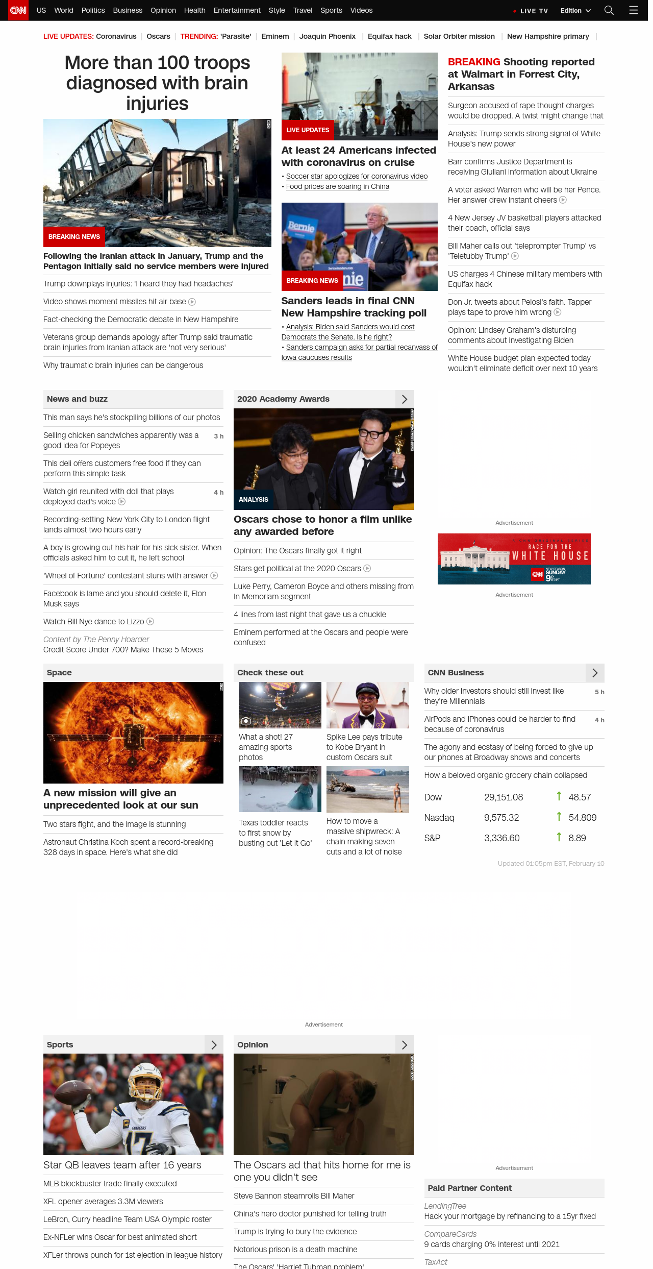 || More than 100 troops diagnosed with brain injuries ||” , title: “CNN – Breaking News, Latest News and Videos” , siblings: {“articleList”:[{“uri”:”/2020/02/10/politics/traumatic-brain-injuries-iran-strike/index.html”,”headline”:”u003cstrong>Following the Iranian attack in January, Trump and the Pentagon initially said no service members were injuredu003c/strong>”,”thumbnail”:”//cdn.cnn.com/cnnnext/dam/assets/200113093539-iraq-al-asad-base-rocket-1-small-11.jpg”,”duration”:””,”description”:”Over 100 US service members have been diagnosed with mild traumatic brain injuries in the wake of the January 8 u003ca href=”https://www.cnn.com/2020/01/07/politics/rockets-us-airbase-iraq/index.html” target=”_blank”>Iranian missile attacku003c/a> on the al Asad military base in Iraq, according to a US official with knowledge of the latest information. “,”layout”:””