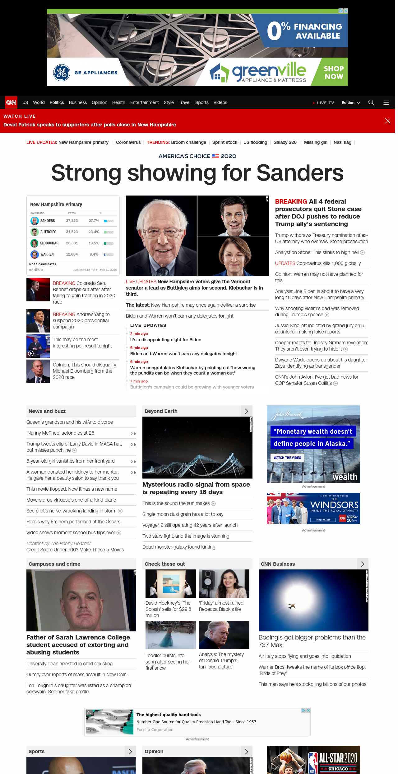 FN: [[SANDERS SURGES]] LIVE COVERAGE: Bernie enjoys early lead in NH as Trump mocks Warren over ' really bad night' ((lubuntu at wor2))