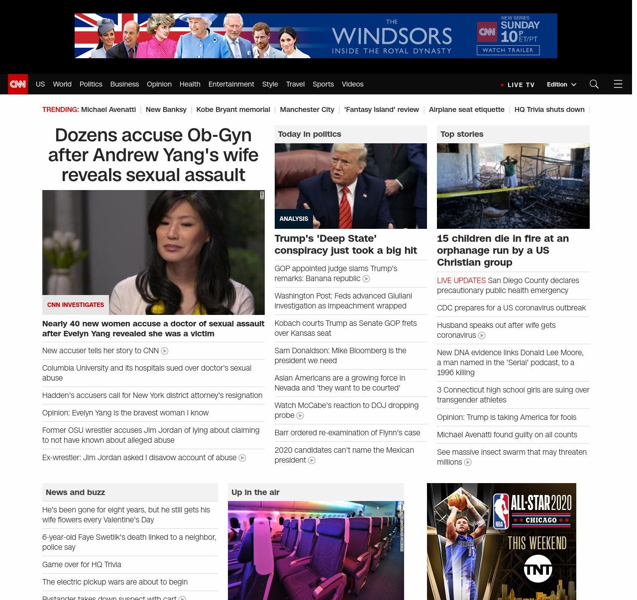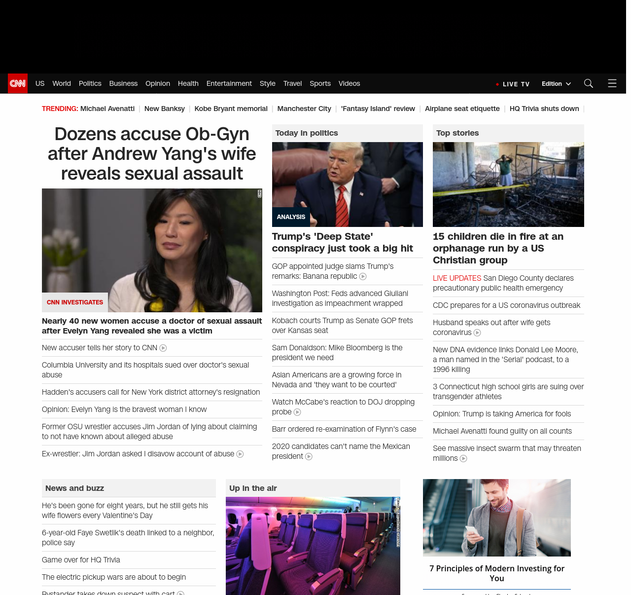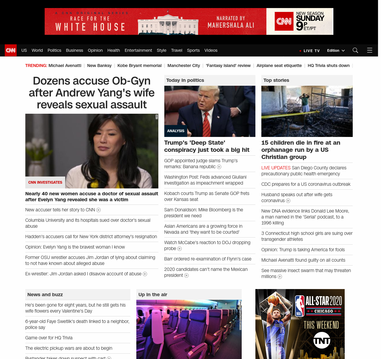 || screaming-banner-text banner-text-size–char-47″ data-analytics=”_list-hierarchical-xs_article_”> Dozens accuse Ob-Gyn after Andrew Yang’s wife reveals sexual assault ||” , title: “CNN – Breaking News, Latest News and Videos” , siblings: {“articleList”:[{“uri”:”/2020/02/14/politics/evelyn-yang-doctor-sexual-assault-accusers-invs/index.html”,”headline”:”u003cstrong>Nearly 40 new women accuse a doctor of sexual assault after Evelyn Yang revealed she was a victimu003c/strong>”,”thumbnail”:”//cdn.cnn.com/cnnnext/dam/assets/200116184700-evelyn-yang-small-11.jpg”,”duration”:””,”description”:”Emilia Heckman trusted Dr. Robert Hadden.”,”layout”:””