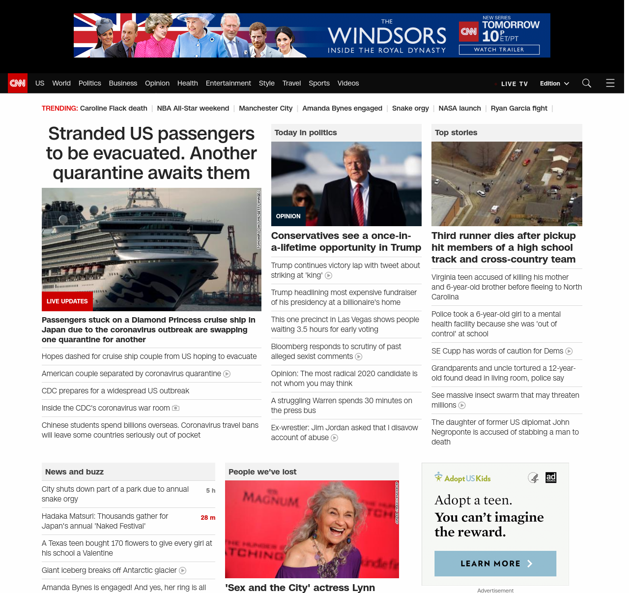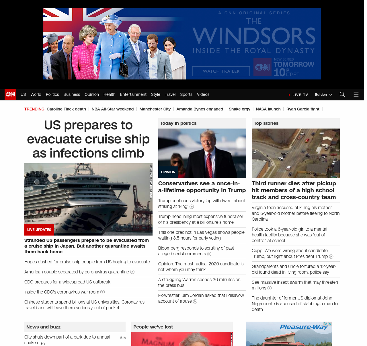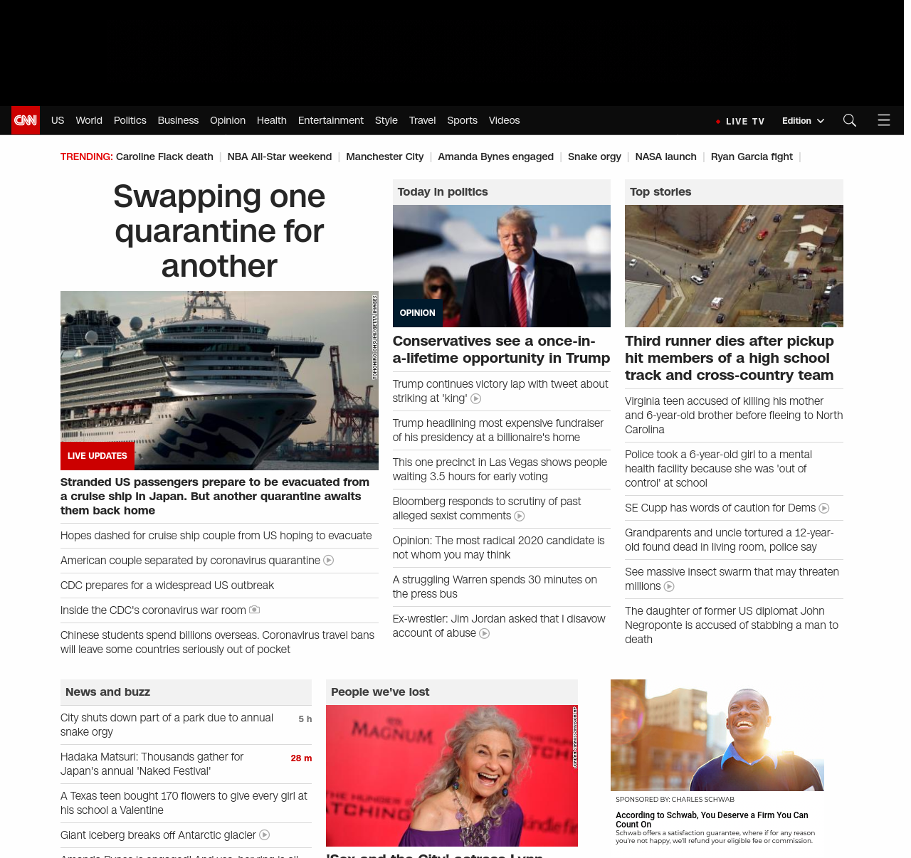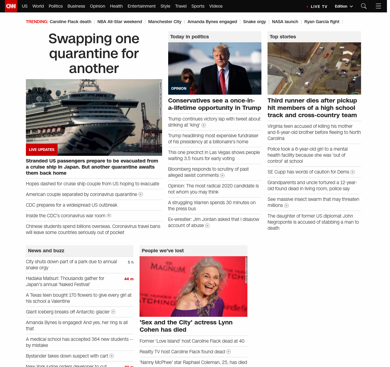 CNN: “:”u003cstrong>Stranded US passengers prepare to be evacuated from a cruise ship in Japan. But another quarantine awaits them back homeu003c/strong>”, “BANNER=|pagerendered| ((lubuntu at wor2))