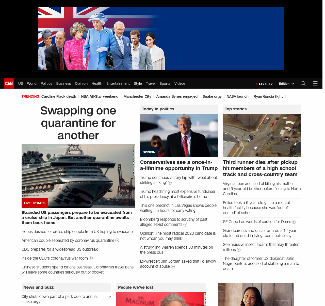 || screaming-banner-text banner-text-size–char-38″ data-analytics=”_list-hierarchical-xs_article_”> Swapping one quarantine for another ||” , title: “CNN – Breaking News, Latest News and Videos” , siblings: {“articleList”:[{“uri”:”/asia/live-news/coronavirus-outbreak-02-16-20-intl-hnk/index.html”,”headline”:”u003cstrong>Stranded US passengers prepare to be evacuated from a cruise ship in Japan. But another quarantine awaits them back homeu003c/strong>”,”thumbnail”:”//cdn.cnn.com/cnnnext/dam/assets/200212152326-diamond-princess-yokohama-coronavirus-small-11.jpg”,”duration”:””,”description”:””,”layout”:””