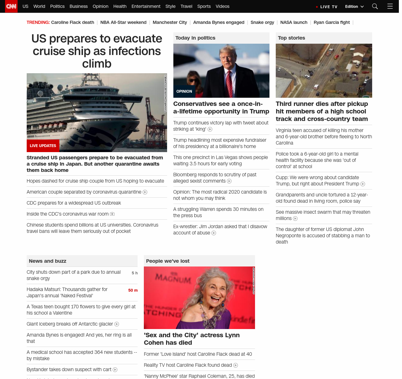 || screaming-banner-text banner-text-size–char-47″ data-analytics=”_list-hierarchical-xs_article_”> US prepares to evacuate cruise ship as infections climb ||” , title: “CNN – Breaking News, Latest News and Videos” , siblings: {“articleList”:[{“uri”:”/asia/live-news/coronavirus-outbreak-02-16-20-intl-hnk/index.html”,”headline”:”u003cstrong>Stranded US passengers prepare to be evacuated from a cruise ship in Japan as 70 more coronavirus cases were confirmed on boardu003c/strong>”,”thumbnail”:”//cdn.cnn.com/cnnnext/dam/assets/200212152326-diamond-princess-yokohama-coronavirus-small-11.jpg”,”duration”:””,”description”:””,”layout”:””