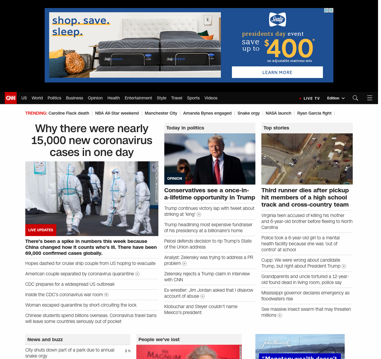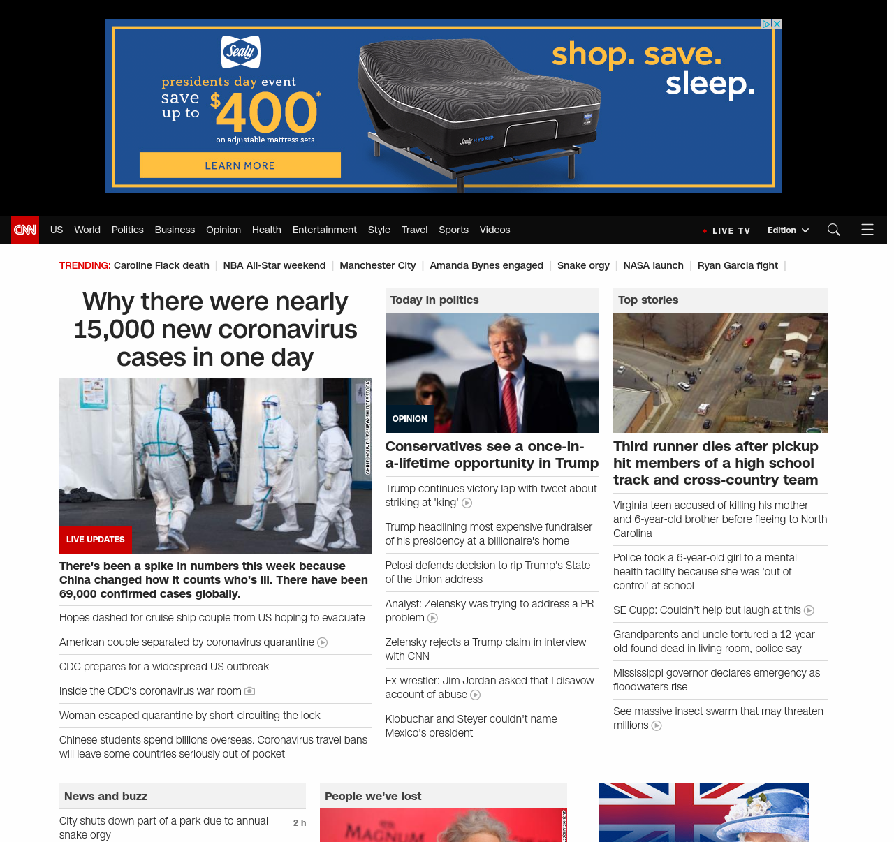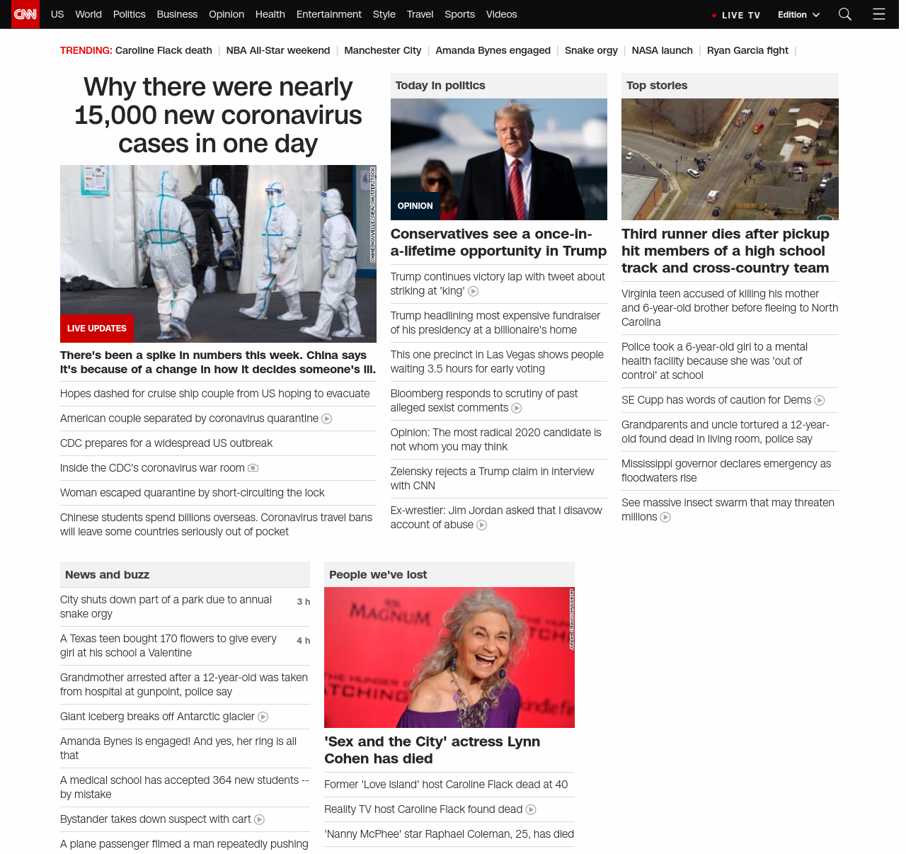 || screaming-banner-text banner-text-size–char-47″ data-analytics=”_list-hierarchical-xs_article_”> Why there were nearly 15,000 new coronavirus cases in one day ||” , title: “CNN – Breaking News, Latest News and Videos” , siblings: {“articleList”:[{“uri”:”/asia/live-news/coronavirus-outbreak-02-16-20-intl-hnk/index.html”,”headline”:”u003cstrong>There’s been a spike in numbers this week. China says it’s because of a change in how it decides someone’s ill. u003c/strong>”,”thumbnail”:”//cdn.cnn.com/cnnnext/dam/assets/200214095242-10-coronavirus-0212-wuhan-small-11.jpg”,”duration”:””,”description”:””,”layout”:””