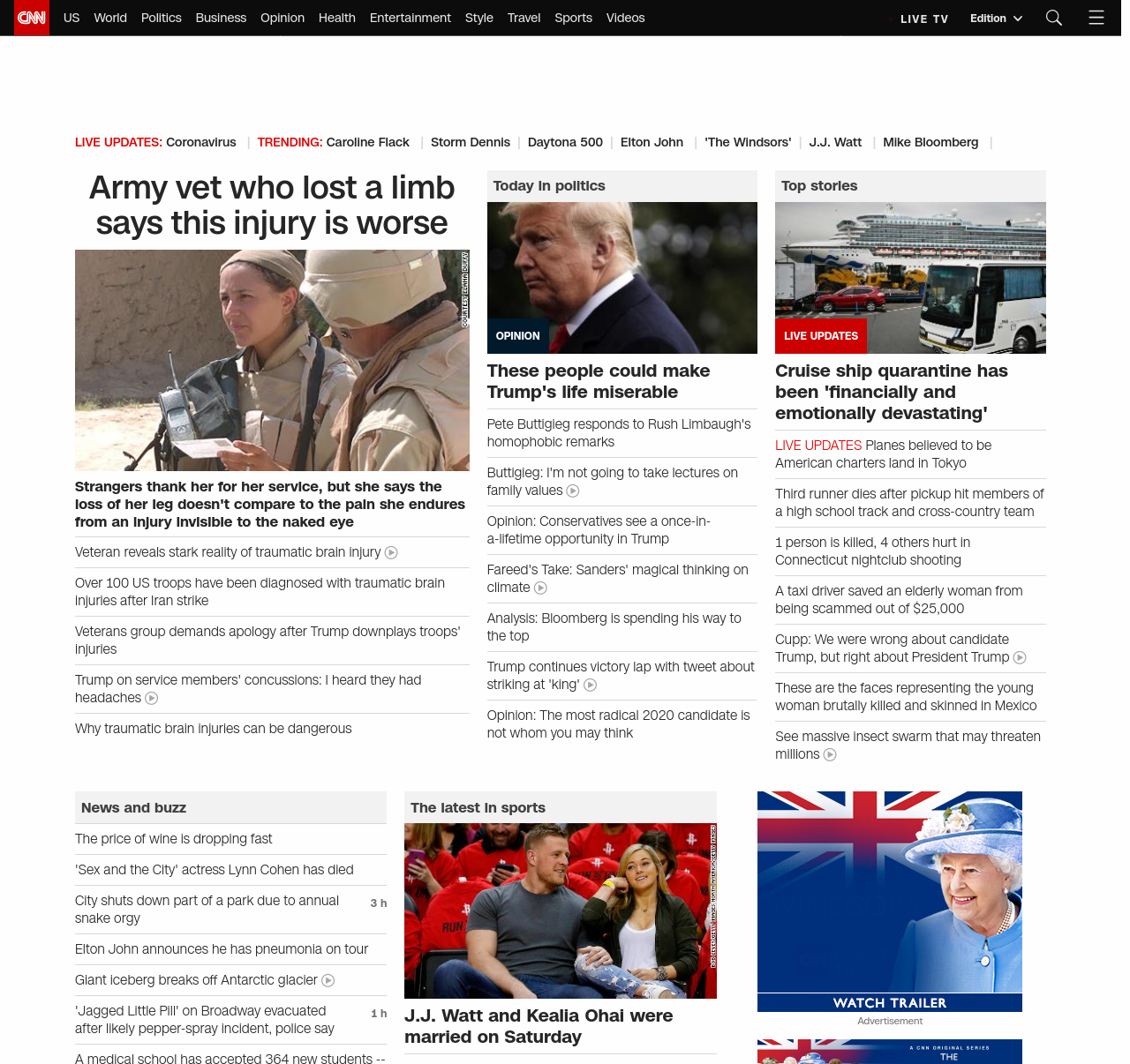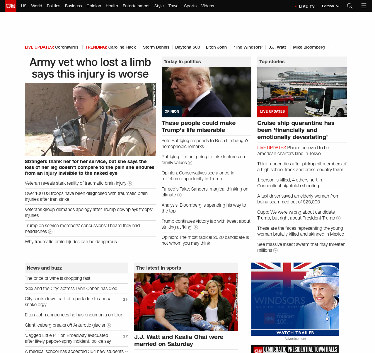 || screaming-banner-text banner-text-size–char-47″ data-analytics=”_list-hierarchical-xs_article_”> Cruise ship quarantine has been ‘financially and emotionally devastating’ ||” , title: “CNN – Breaking News, Latest News and Videos” , siblings: {“articleList”:[{“uri”:”/2020/02/14/politics/home-front-traumatic-brain-injuries/index.html”,”headline”:”u003cstrong>Strangers u003c/strong>u003cstrong>thank her for her service, but she says the loss of her leg doesn’t compare to the pain she endures from an injury invisible to the naked eyeu003c/strong>”,”thumbnail”:”//cdn.cnn.com/cnnnext/dam/assets/200214134152-01-elana-duffy-small-11.jpg”,”duration”:””,”description”:”Take one look at Army veteran Elana Duffy and you’ll notice her leg, which was amputated after she sustained major nerve damage in a Humvee crash while serving in Iraq. “,”layout”:””