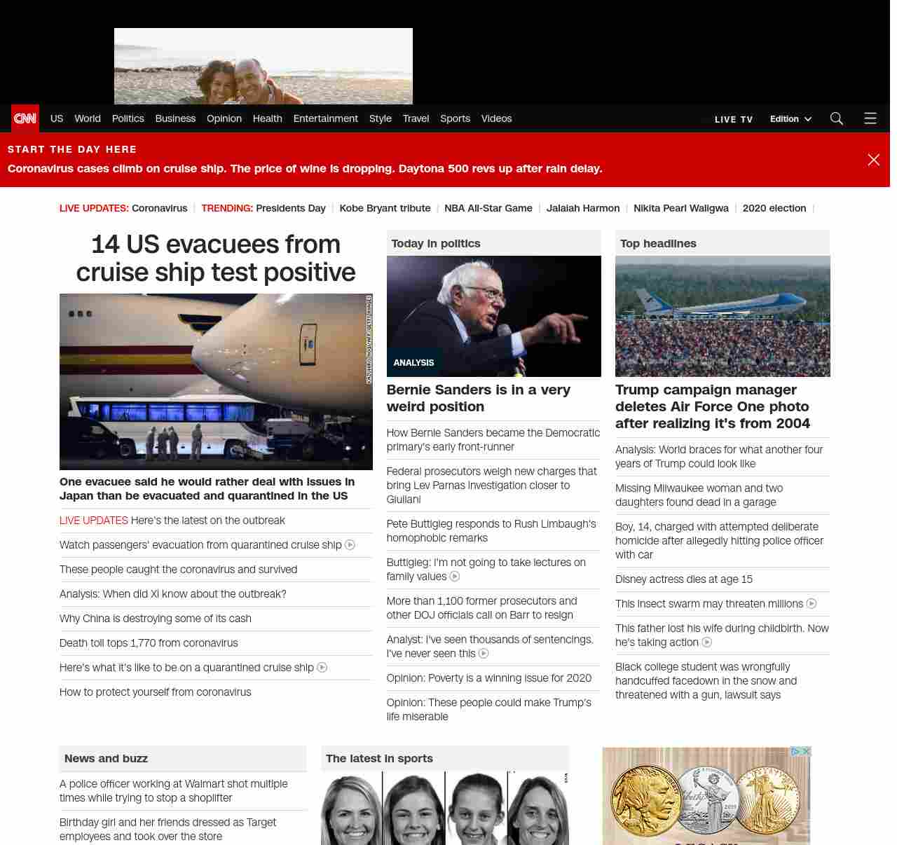 || screaming-banner-text banner-text-size–char-47″ data-analytics=”_list-hierarchical-xs_article_”> 14 US evacuees from cruise ship test positive ||” , title: “CNN – Breaking News, Latest News and Videos” , siblings: {“articleList”:[{“uri”:”/2020/02/17/health/evacuated-passengers-test-positive-coronavirus/index.html”,”headline”:”u003cstrong>One evacuee said he would rather deal with issues in Japan than be evacuated and quarantined in the USu003c/strong>”,”thumbnail”:”//cdn.cnn.com/cnnnext/dam/assets/200217025552-02-coronavirus-us-plane-0216-japan-small-11.jpg”,”duration”:””,”description”:”Fourteen passengers aboard US chartered flights evacuating Americans and their families from the Diamond Princess cruise ship have tested positive foru003ca href=”https://www.cnn.com/specials/asia/coronavirus-outbreak-intl-hnk” target=”_blank”> novel coronavirusu003c/a>, according to a joint statement from the US Departments of State and Health and Human Services.”,”layout”:””