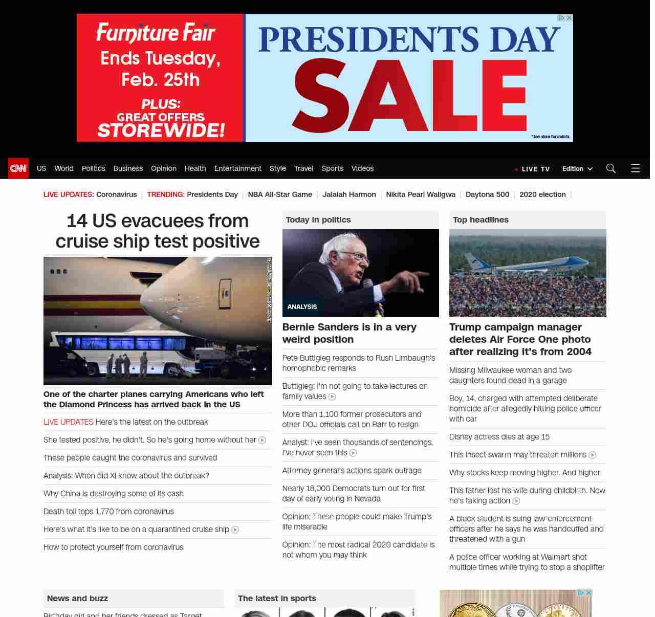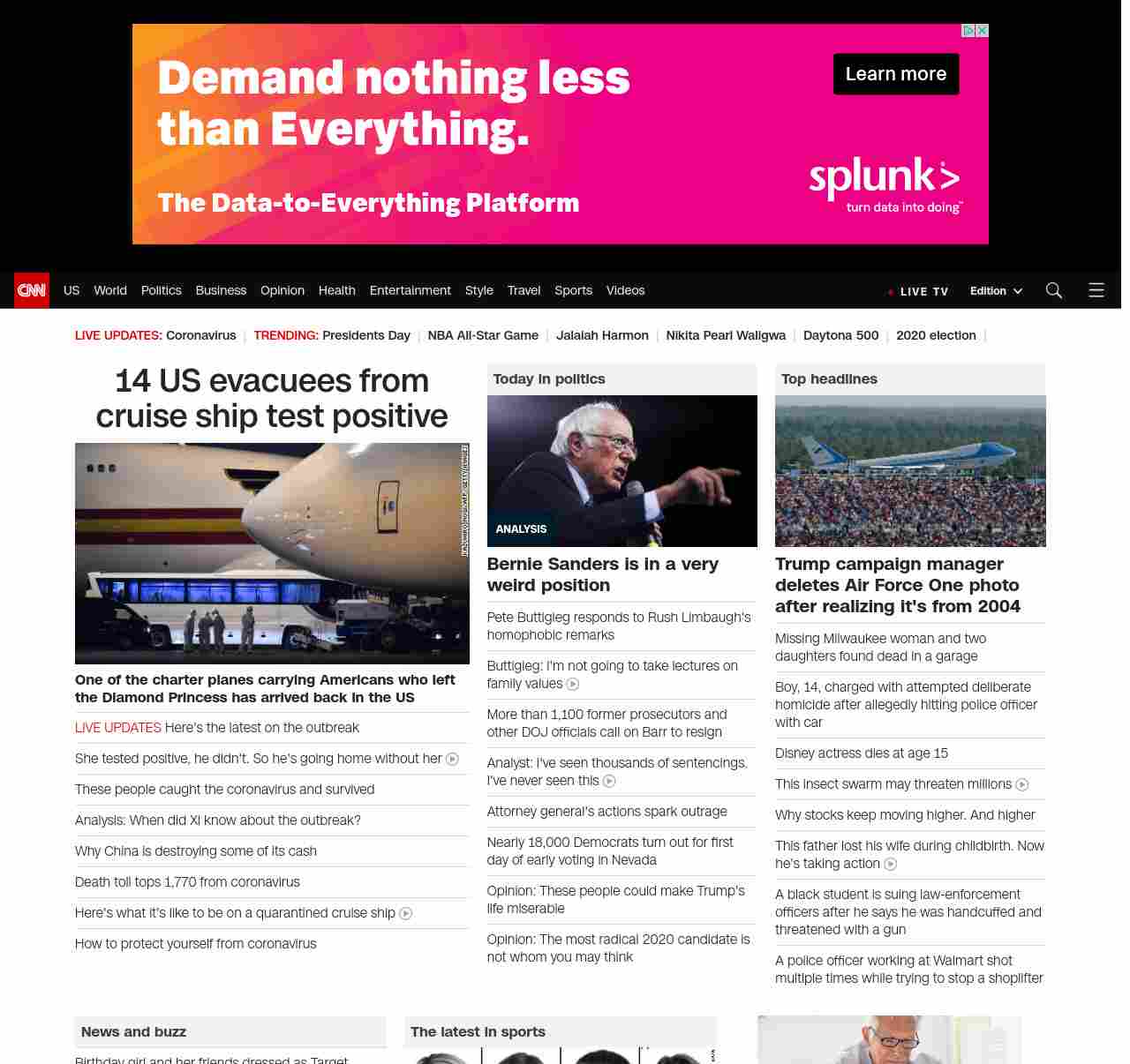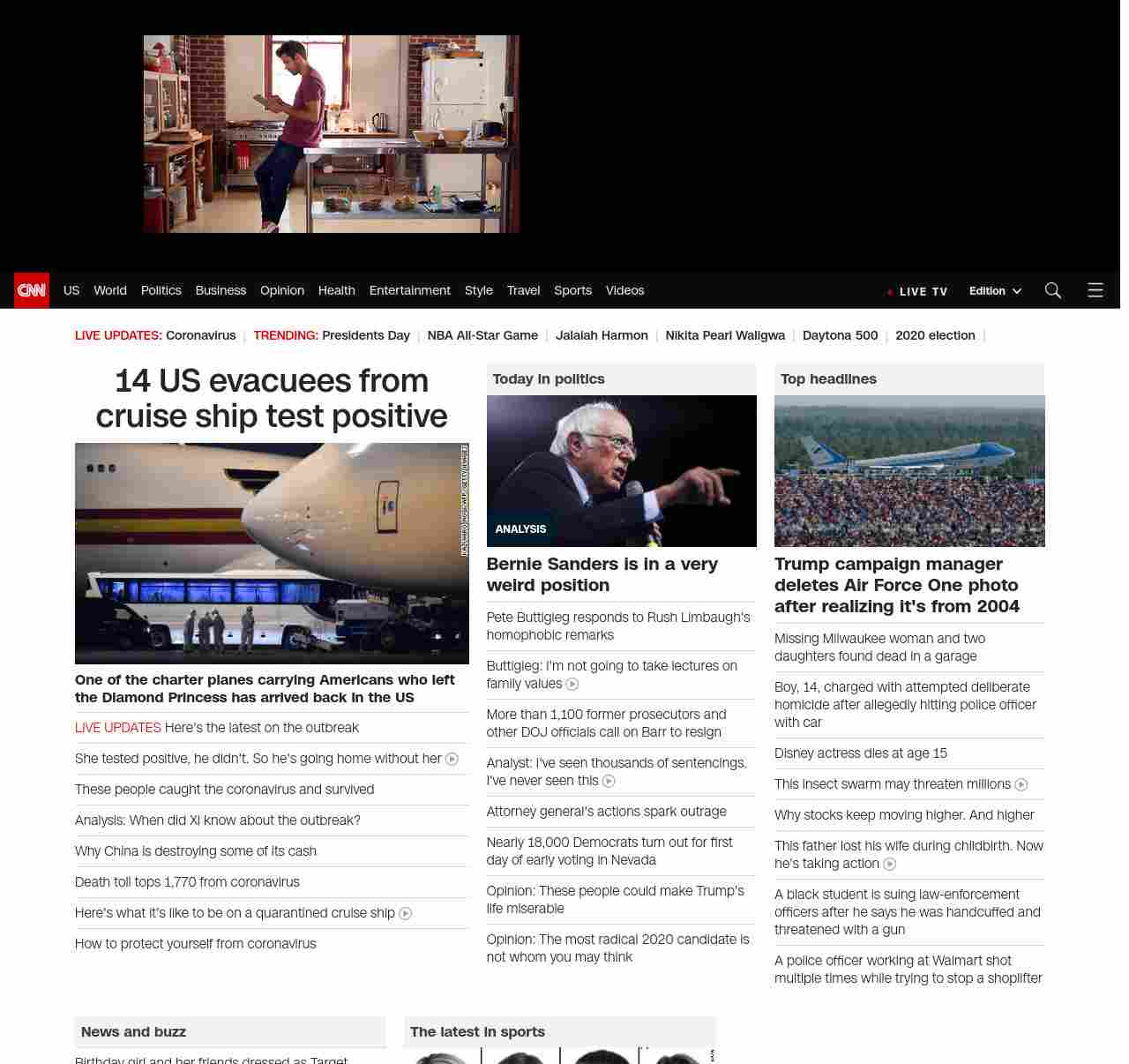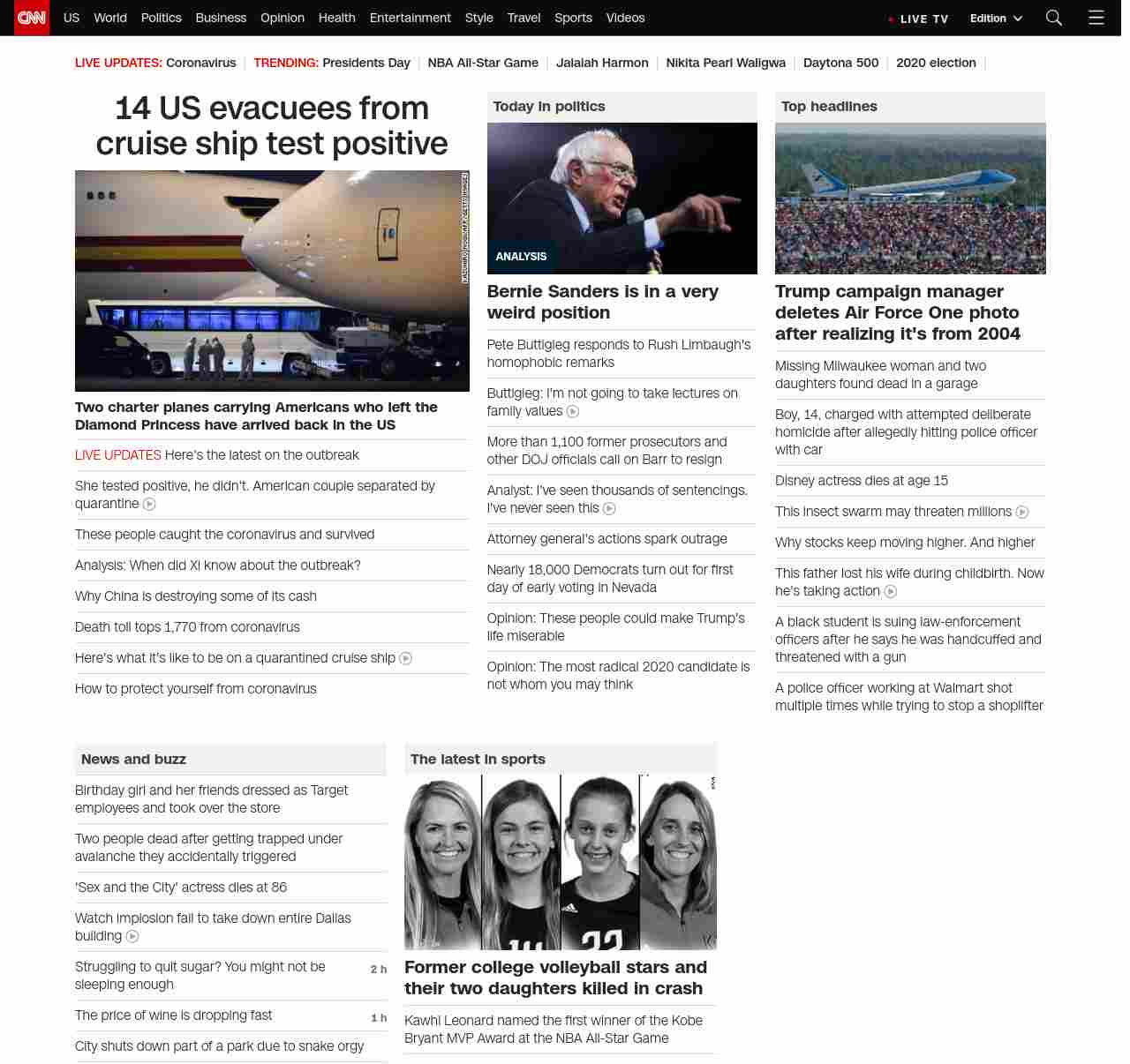 || screaming-banner-text banner-text-size–char-47″ data-analytics=”_list-hierarchical-xs_article_”> 14 US evacuees from cruise ship test positive ||” , title: “CNN – Breaking News, Latest News and Videos” , siblings: {“articleList”:[{“uri”:”/2020/02/17/health/evacuated-passengers-test-positive-coronavirus/index.html”,”headline”:”u003cstrong>One of the charter planes carrying Americans who left the Diamond Princess has arrived back in the USu003c/strong>”,”thumbnail”:”//cdn.cnn.com/cnnnext/dam/assets/200217025552-02-coronavirus-us-plane-0216-japan-small-11.jpg”,”duration”:””,”description”:”Fourteen passengers aboard US chartered flights evacuating Americans and their families from the Diamond Princess cruise ship have tested positive foru003ca href=”https://www.cnn.com/specials/asia/coronavirus-outbreak-intl-hnk” target=”_blank”> novel coronavirusu003c/a>, according to a joint statement from the US Departments of State and Health and Human Services.”,”layout”:””