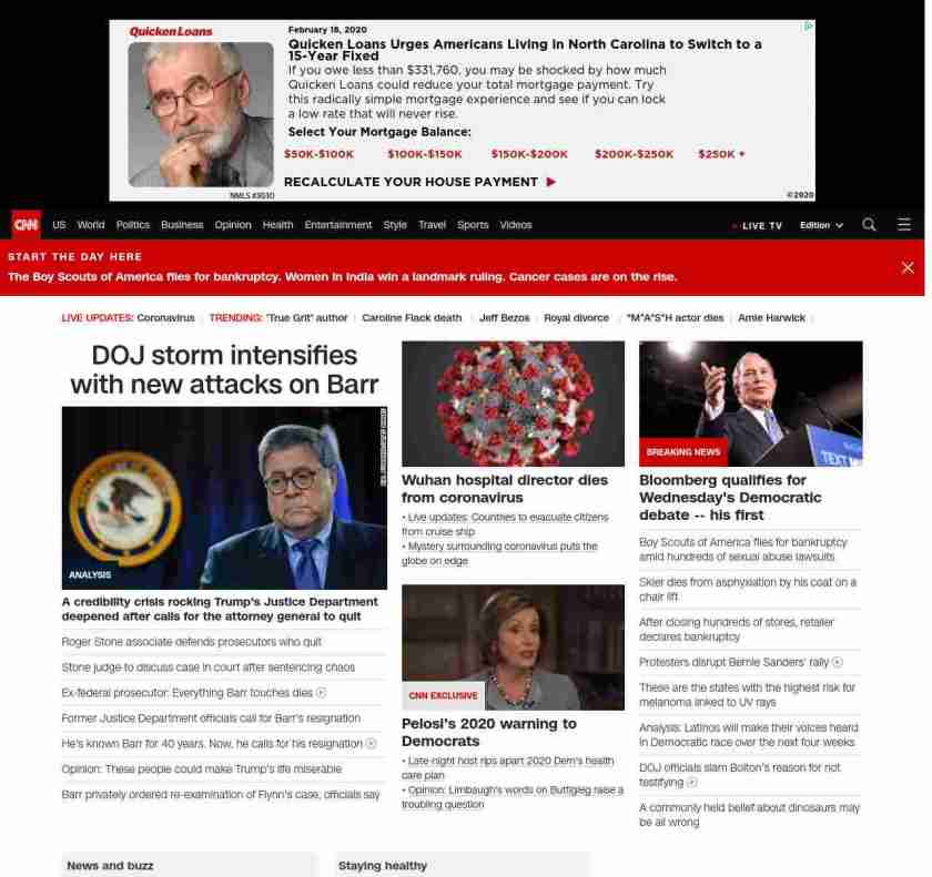 || screaming-banner-text banner-text-size–char-41″ data-analytics=”_list-hierarchical-xs_article_”> Coronavirus mystery puts globe on edge ||” , title: “CNN – Breaking News, Latest News and Videos” , siblings: {“articleList”:[{“uri”:”/2020/02/18/politics/donald-trump-bill-barr-justice-department/index.html”,”headline”:”u003cstrong>A credibility crisis rocking Trump’s Justice Department deepened after calls for the attorney general to quitu003c/strong>”,”thumbnail”:”//cdn.cnn.com/cnnnext/dam/assets/200216121448-william-barr-file-small-11.jpg”,”duration”:””,”description”:”A credibility crisis rocking u003ca href=”https://www.cnn.com/election/2020/candidate/trump” target=”_blank”>President Donald Trump’su003c/a> Justice Department significantly deepened over the long holiday weekend amid u003ca href=”http://www.cnn.com/2020/02/16/politics/prosecutors-doj-officials-barr-resign/index.html” target=”_blank”>rising calls for Attorney General Bill Barr to quitu003c/a> over claims he has politicized of highly sensitive cases.”,”layout”:””