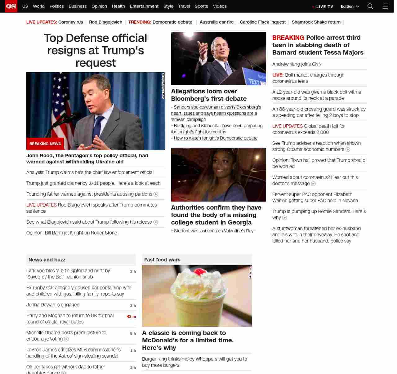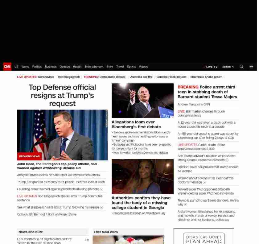 || screaming-banner-text banner-text-size–char-47″ data-analytics=”_list-hierarchical-xs_article_”> Top Defense official resigns at Trump’s request ||” , title: “CNN – Breaking News, Latest News and Videos” , siblings: {“articleList”:[{“uri”:”/2020/02/19/politics/john-rood-pentagon-official-depart/index.html”,”headline”:”u003cstrong>John Rood, the Pentagon’s top policy official, had warned against withholding Ukraine aidu003c/strong>”,”thumbnail”:”//cdn.cnn.com/cnnnext/dam/assets/200219113418-02-john-rood-file-small-11.jpg”,”duration”:””,”description”:”The Pentagon’s top policy official is expected to depart his post soon, according to two sources familiar with the matter. u003ca href=”https://www.cnn.com/2018/07/20/politics/john-rood-putin-aspen-security-conference/index.html” target=”_blank”>John Rood, Under Secretary of Defense for Policy at the Pentagonu003c/a>, lost support among senior national security leadership and has been asked for his resignation, one of the sources said. “,”layout”:””