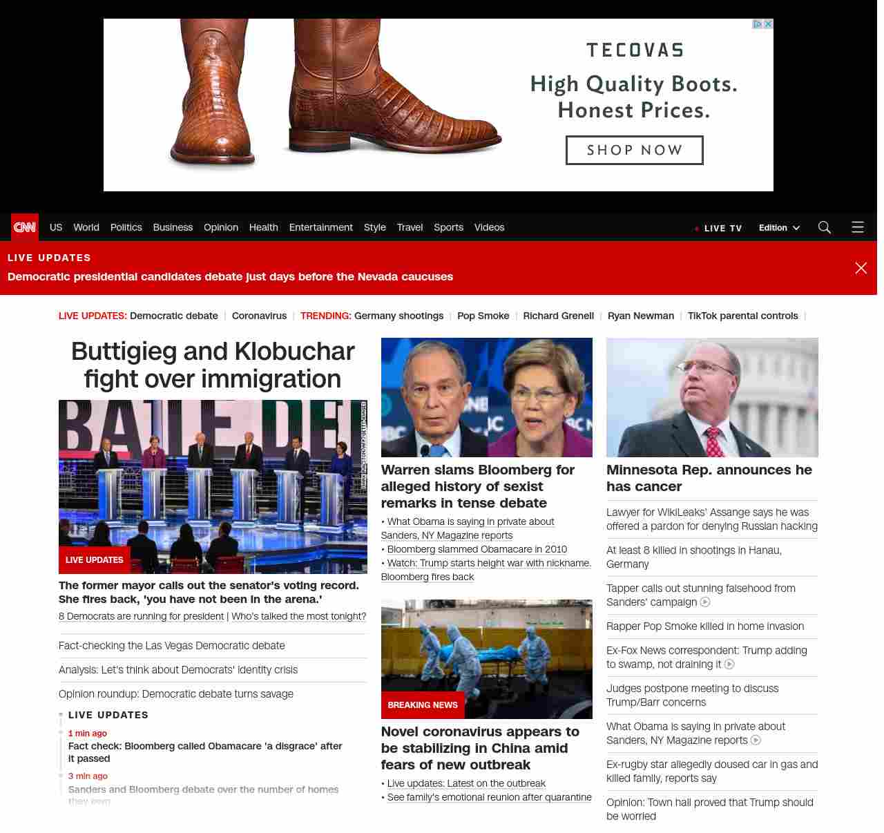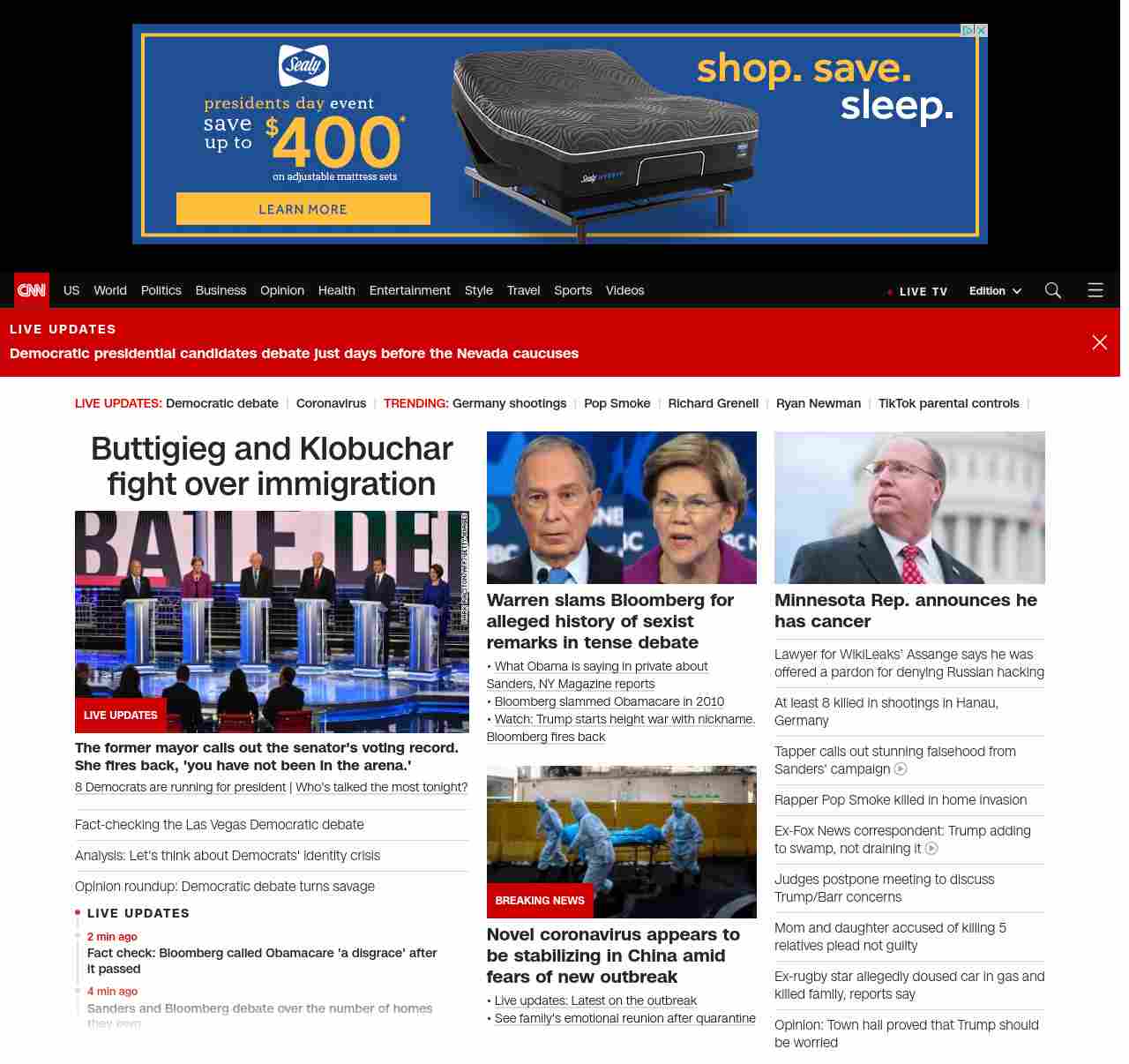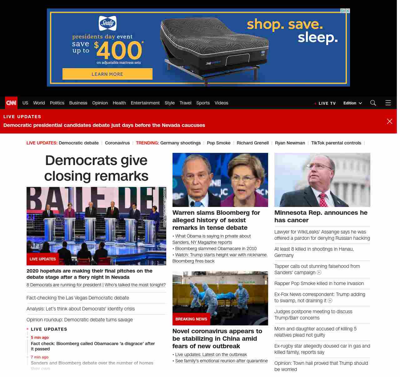 || screaming-banner-text banner-text-size–char-47″ data-analytics=”_list-hierarchical-xs_hyperlink_”> Bloomberg and Sanders spar over vacation homes ||” , title: “CNN – Breaking News, Latest News and Videos” , siblings: {“articleList”:[{“uri”:”/2020/02/19/politics/las-vegas-debate-fact-check/index.html”,”headline”:”Fact-checking the Las Vegas Democratic debate”,”thumbnail”:”//cdn.cnn.com/cnnnext/dam/assets/200219102614-0219-nevada-debate-candidates-split-small-11.jpg”,”duration”:””,”description”:”Welcome to CNN’s fact check coverage of the Democratic presidential debate hosted by NBC News and MSNBC and held in Las Vegas ahead of Saturday’s Nevada caucuses.”,”layout”:””