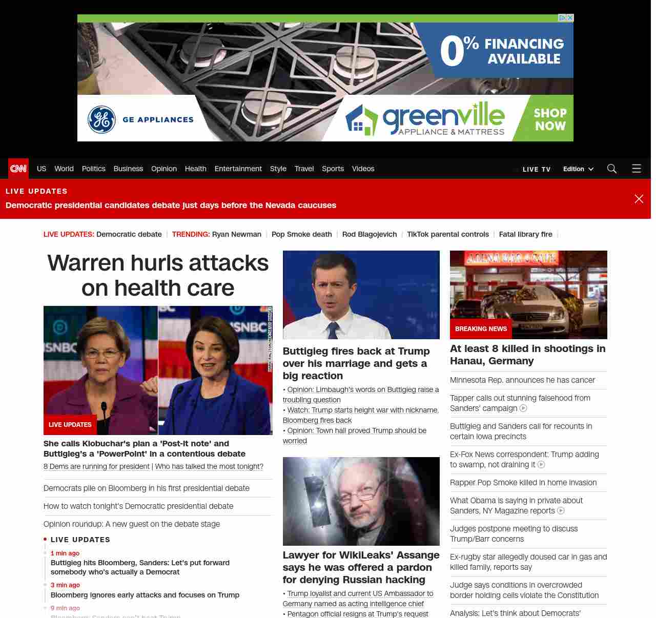 CNN: “:”Democrats pile on Bloomberg in his first presidential debate”, “BANNER=|pagerendered| ((lubuntu at wor2))