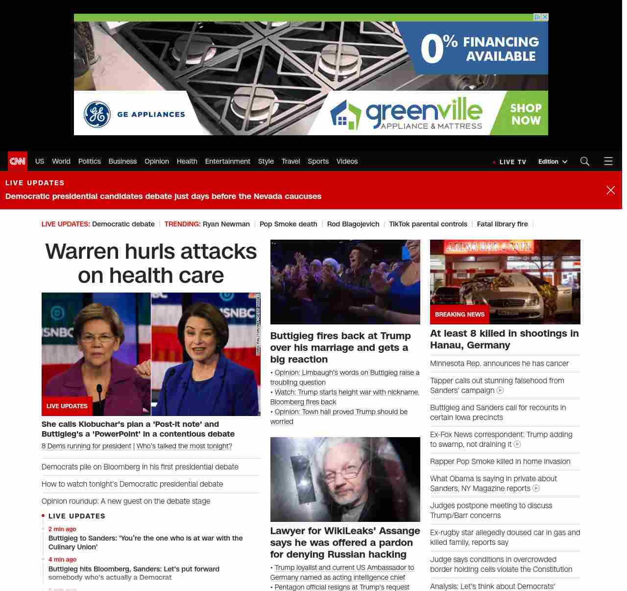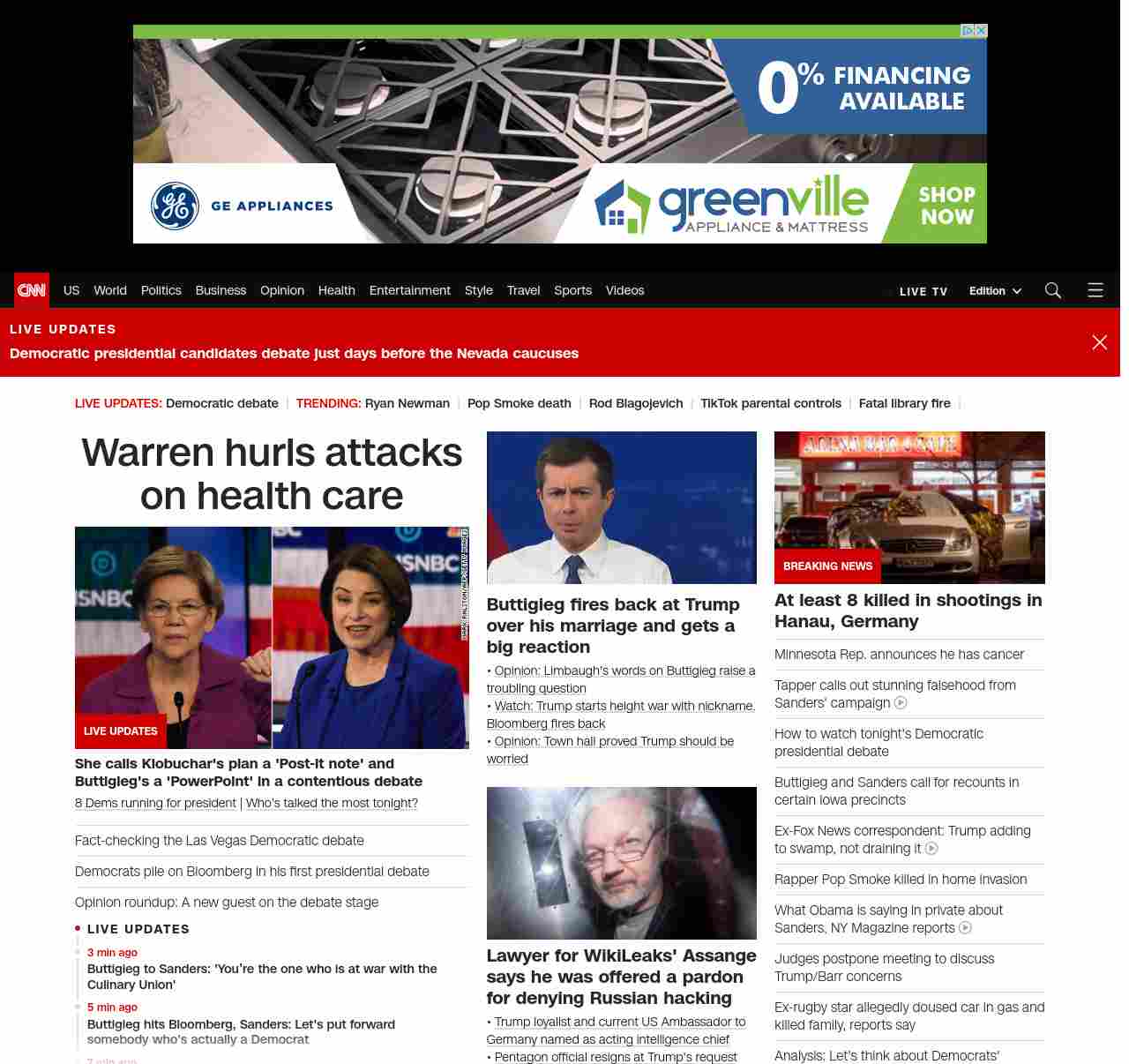 || screaming-banner-text banner-text-size–char-38″ data-analytics=”_list-hierarchical-xs_hyperlink_”> Warren hurls attacks on health care ||” , title: “CNN – Breaking News, Latest News and Videos” , siblings: {“articleList”:[{“uri”:”/2020/02/19/politics/las-vegas-debate-fact-check/index.html”,”headline”:”Fact-checking the Las Vegas Democratic debate”,”thumbnail”:”//cdn.cnn.com/cnnnext/dam/assets/200219102614-0219-nevada-debate-candidates-split-small-11.jpg”,”duration”:””,”description”:”Welcome to CNN’s fact check coverage of the Democratic presidential debate hosted by NBC News and MSNBC and held in Las Vegas ahead of Saturday’s Nevada caucuses.”,”layout”:””
