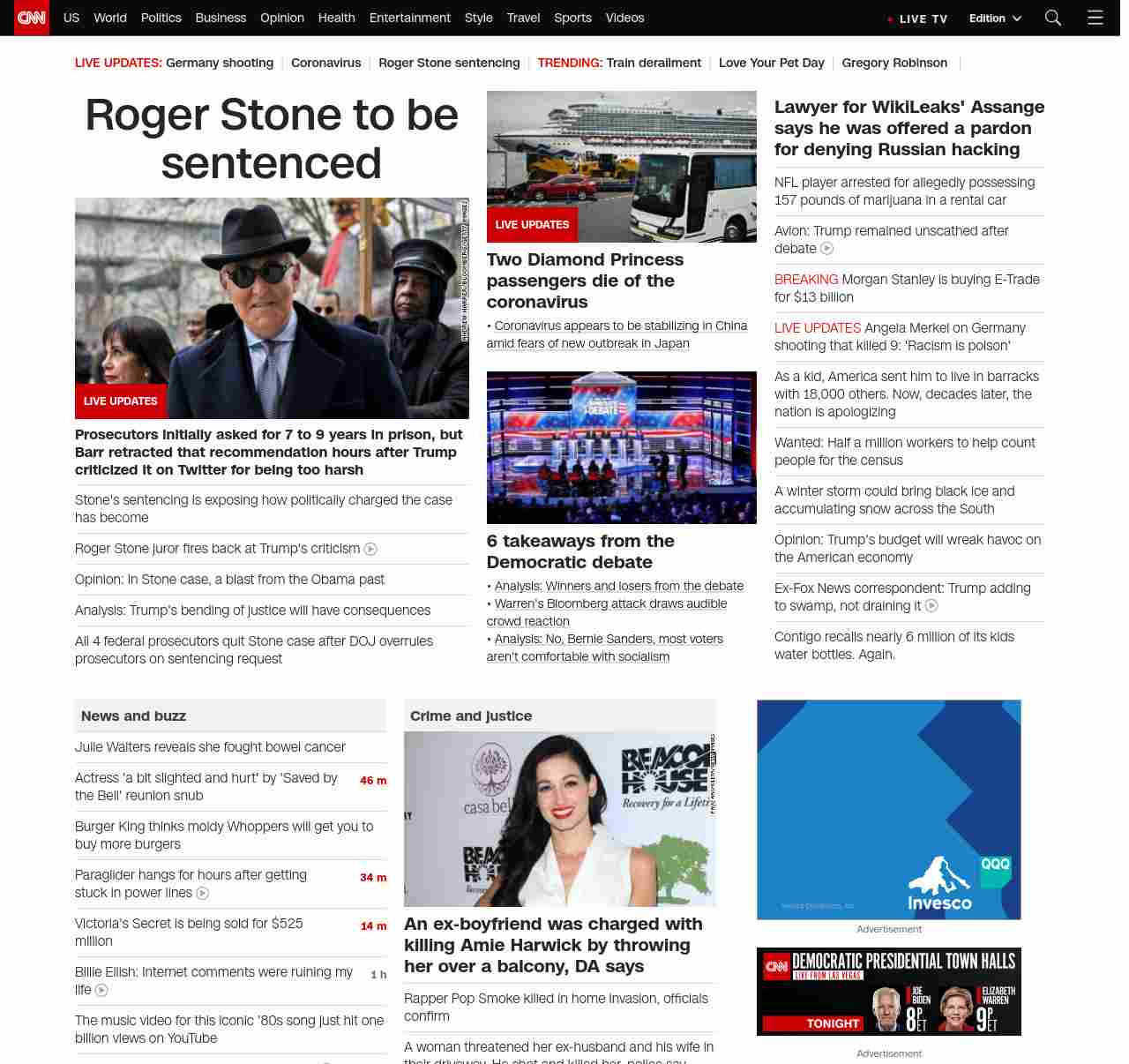 || screaming-banner-text banner-text-size–char-29″ data-analytics=”_list-hierarchical-xs_hyperlink_”> Roger Stone to be sentenced ||” , title: “CNN – Breaking News, Latest News and Videos” , siblings: {“articleList”:[{“uri”:”/2020/02/20/politics/roger-stone-sentencing-hearing/index.html”,”headline”:”Stone’s sentencing is exposing how politically charged the case has become”,”thumbnail”:”//cdn.cnn.com/cnnnext/dam/assets/200220141118-04-roger-stone-0220-restricted-small-11.jpg”,”duration”:””,”description”:”Roger Stone, a longtime showman, political strategist and friend of Donald Trump’s whom a jury found guilty of lying to Congress and threatening a witness regarding his efforts for the President’s 2016 campaign, will be u003ca href=”http://www.cnn.com/2020/02/18/politics/roger-stone-hearing/index.html” target=”_blank”>sentencedu003c/a> Thursday in Washington.”,”layout”:””