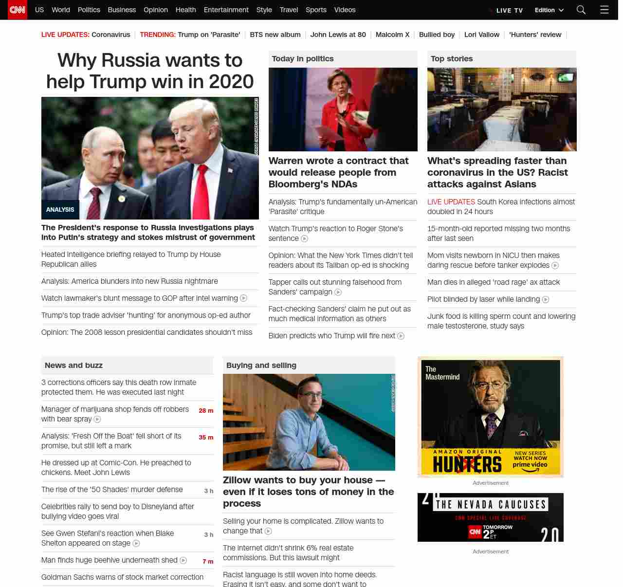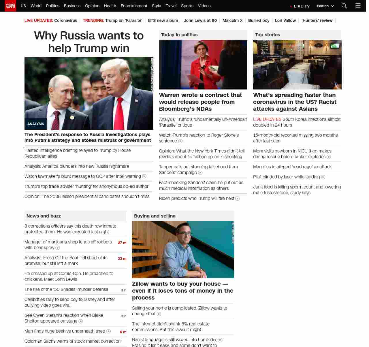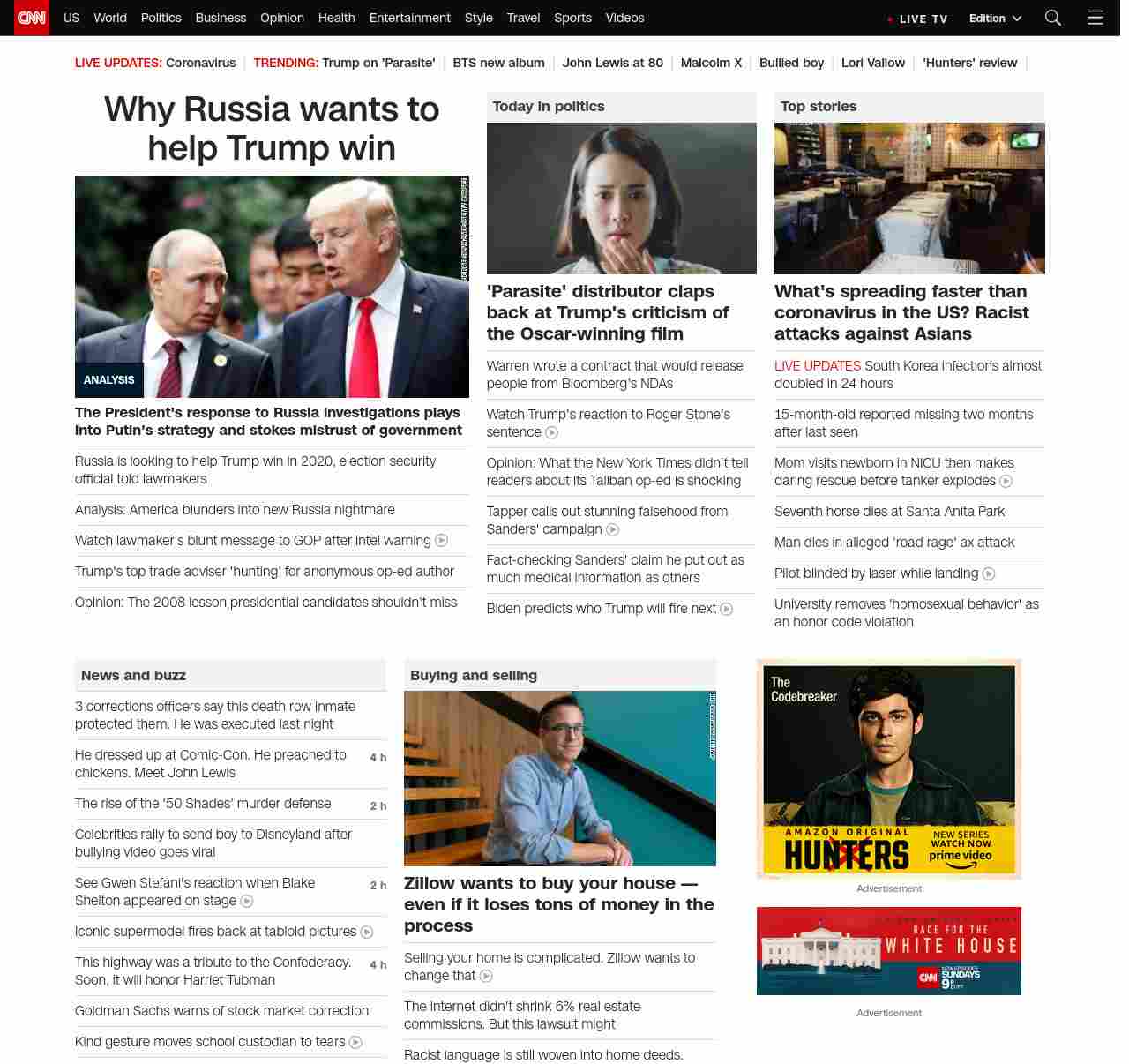 || screaming-banner-text banner-text-size–char-35″ data-analytics=”_list-hierarchical-xs_article_”> Why Russia wants to help Trump win ||” , title: “CNN – Breaking News, Latest News and Videos” , siblings: {“articleList”:[{“uri”:”/2020/02/21/europe/putin-trump-2020-election-analysis-intl/index.html”,”headline”:”u003cstrong>The President’s response to Russia investigations plays into Putin’s strategy and stokes mistrust of governmentu003c/strong>”,”thumbnail”:”//cdn.cnn.com/cnnnext/dam/assets/191230193403-putin-trump-file-new-small-11.jpg”,”duration”:””,”description”:”It’s a familiar plot line: Top intelligence officials deliver a warning to lawmakers that Russia wants to interfere in the upcoming presidential election — and that the Kremlin’s u003ca href=”https://edition.cnn.com/2020/02/20/politics/trump-russia-intelligence-2020/index.html” target=”_blank”>preferred outcome is a win by President Donald Trumpu003c/a>.”,”layout”:””