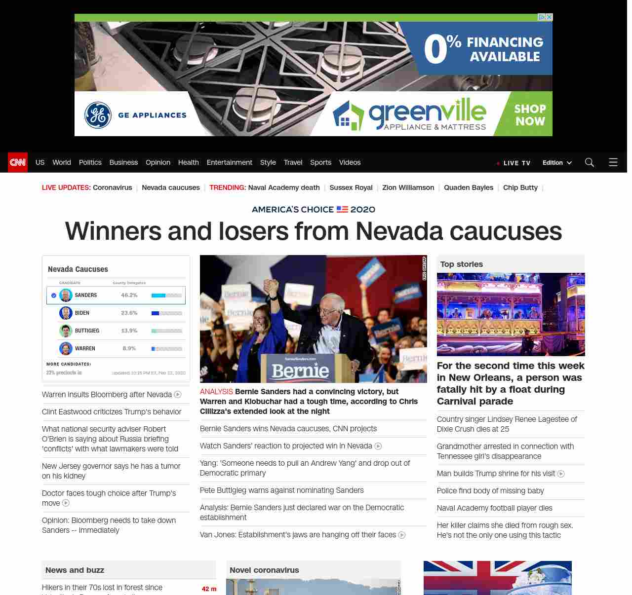 || banner-text–maximized banner-text-size–char-20″> Sanders wins Nevada ||” , title: “CNN – Breaking News, Latest News and Videos” , siblings: {“articleList”:[{“uri”:”/politics/live-news/nevada-caucuses-live-results-updates-2020/index.html”,”headline”:”u003cstrong>The senator’s victory reinforces his front-runner status among 2020 Democratsu003c/strong>”,”thumbnail”:”//cdn.cnn.com/cnnnext/dam/assets/200222202509-04-bernie-sanders-san-antonio-0222-small-11.jpg”,”duration”:””,”description”:””,”layout”:””